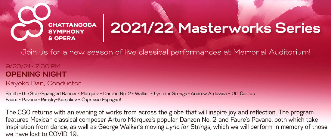 The Chattanooga Symphony and Opera returns September 23 with a joyous program of international works, conducted byKayoko Dan. The music program includesArturo Mrquez, George Walker, Faure, and Andrew Ardizzoia.Ardizzoia's Ubi Caritas, arranged for orchestral brass ensemble, is based on his 2019 choral work.
