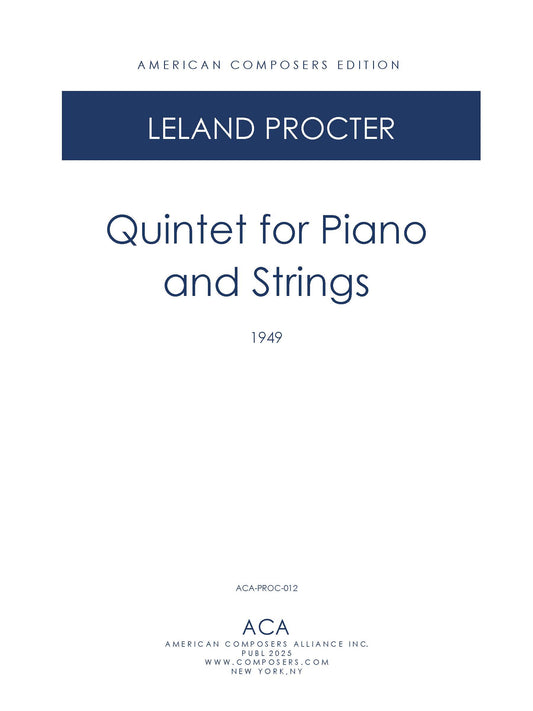 Leland Procter was born in Newton, Massachusetts in 1914, an alumnus of the Eastman School of Music in the class of 1938. He received a Master's degree from the University of Oklahoma and became head of the music department at Southwestern State College at Weatherford, Oklahoma. Following World War II he taught for 12 years at the New England Conservatory of Music in Boston, where he was a member of the department of theory and composition. He died in 1994.