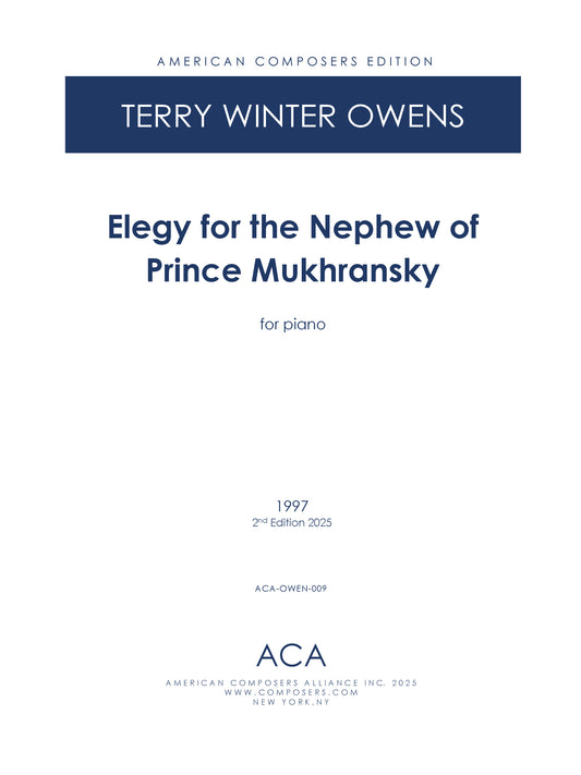 Terry Winter Owens (1936-2007) was an internationally-published composer and pianist based in New York City. Her music has been described as "... hauntingly beautiful ... with a magnetic quality which draws both performer and audience into a different world." The Bangkok Times specially noted the "remarkably evocative sonorities" of her music. Owens's catalogue includes works for piano, two pianos, chamber and vocal ensembles, and symphony orchestra.