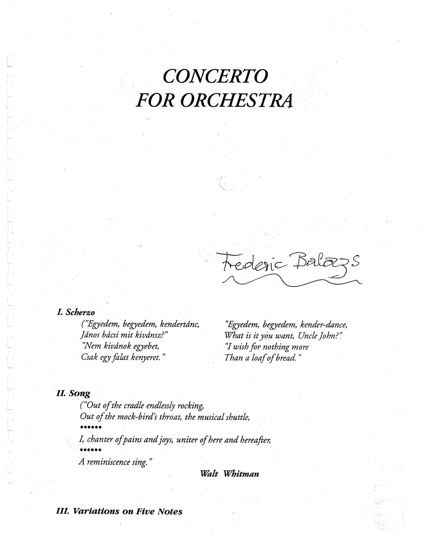 Movements: SCHERZO, SONG, VARIATIONS ON FIVE NOTES