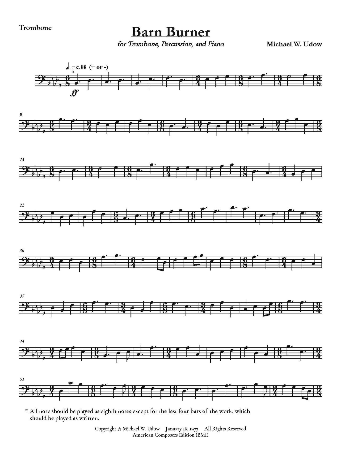 First performance: Randall Hawes, bass trombone; Kathryn Goodson, piano; Brian Jones, percussion