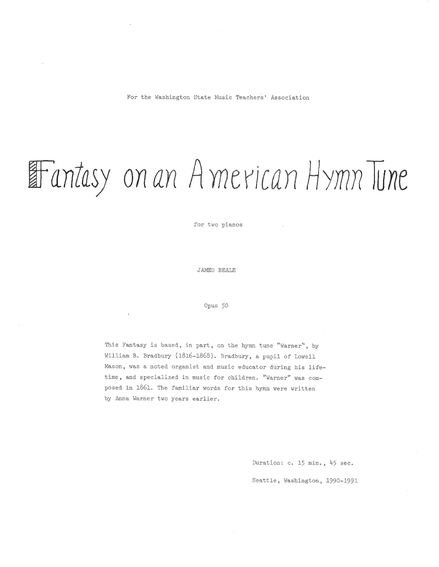 First performance: James + Jane Beale, pianists, Tacoma, June 21, 1991