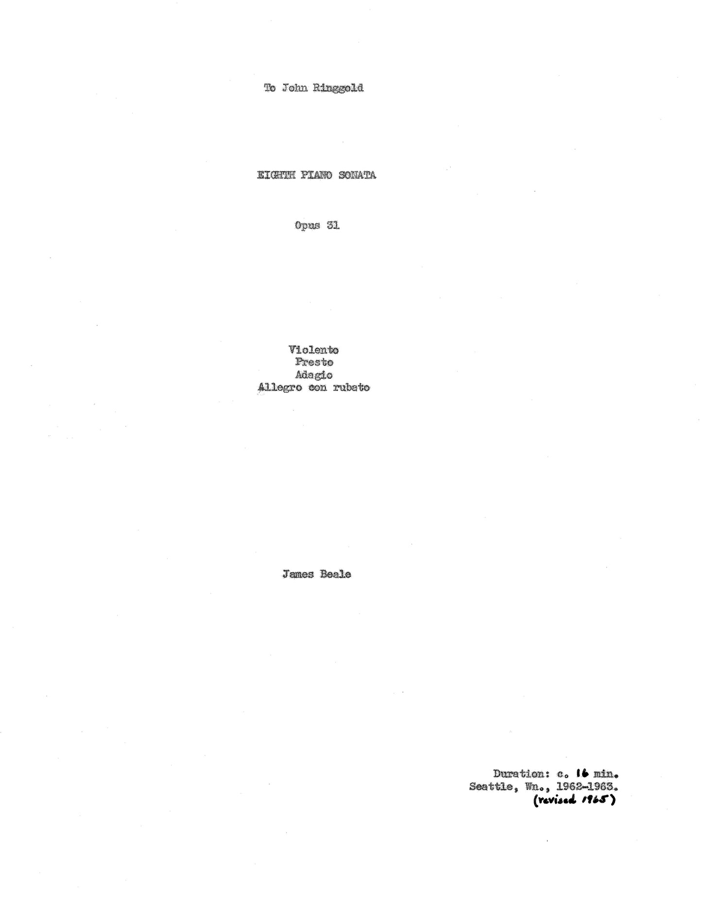 First performance: John Ringgold, piano, Seattle, May 15, 1964