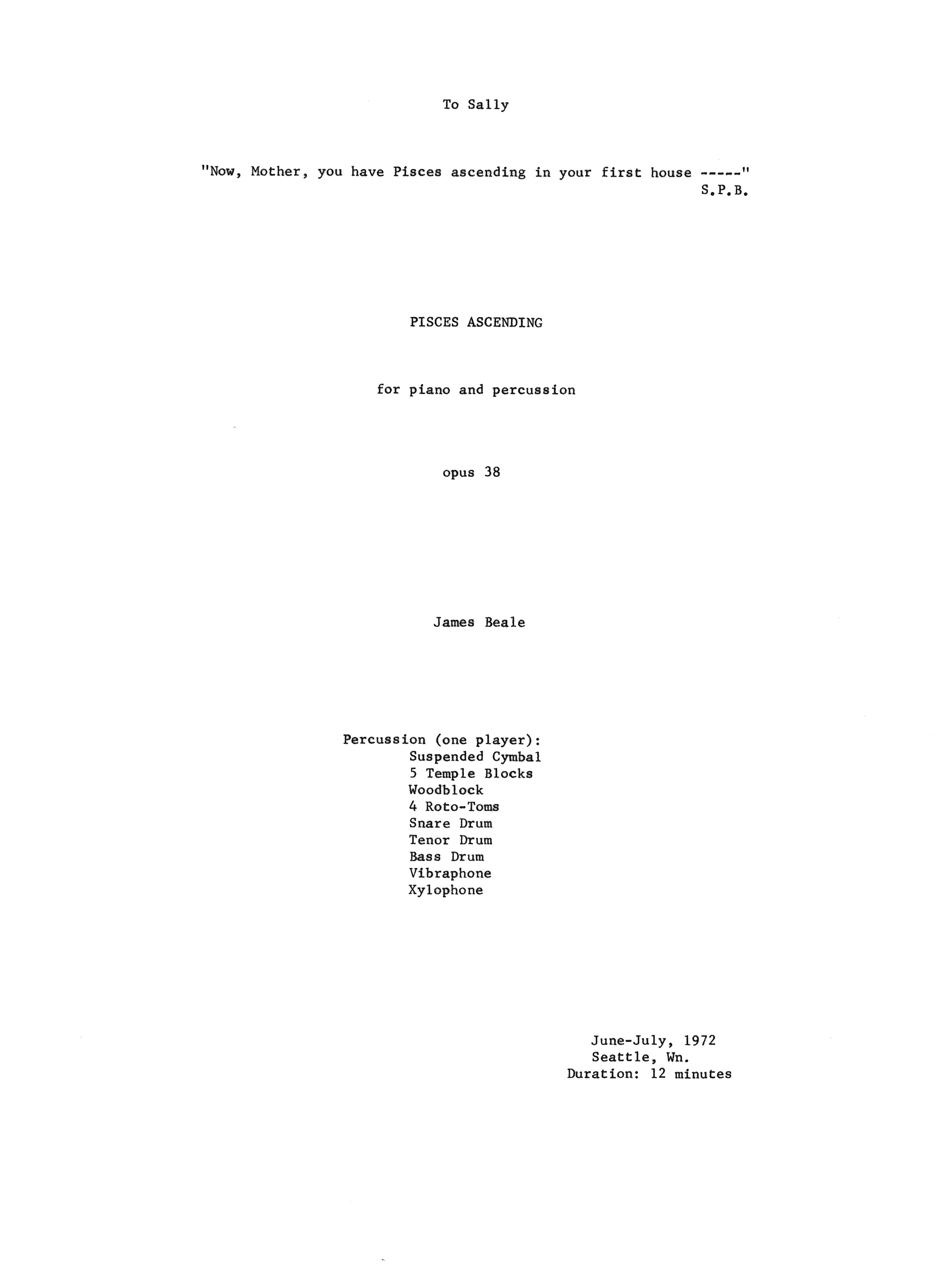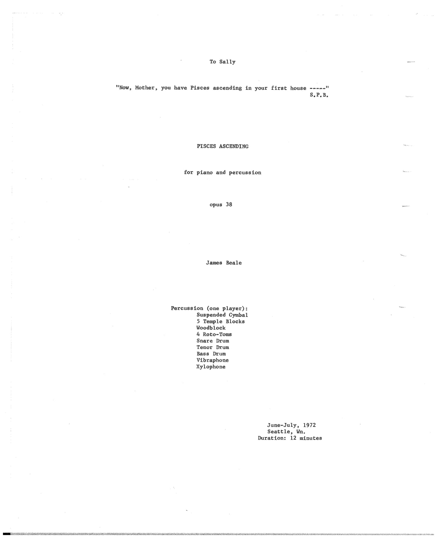 First performance: David Shrader, perc., Jane Beale, piano, Seattle, August 28, 1972