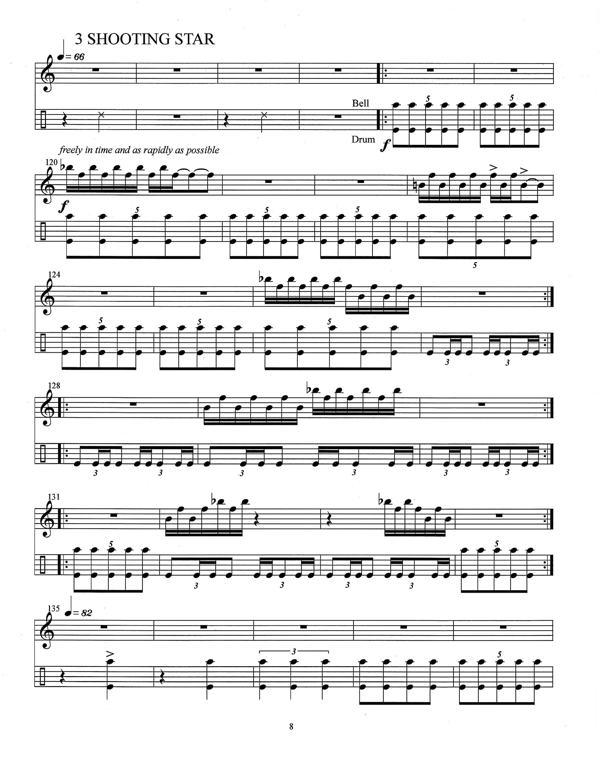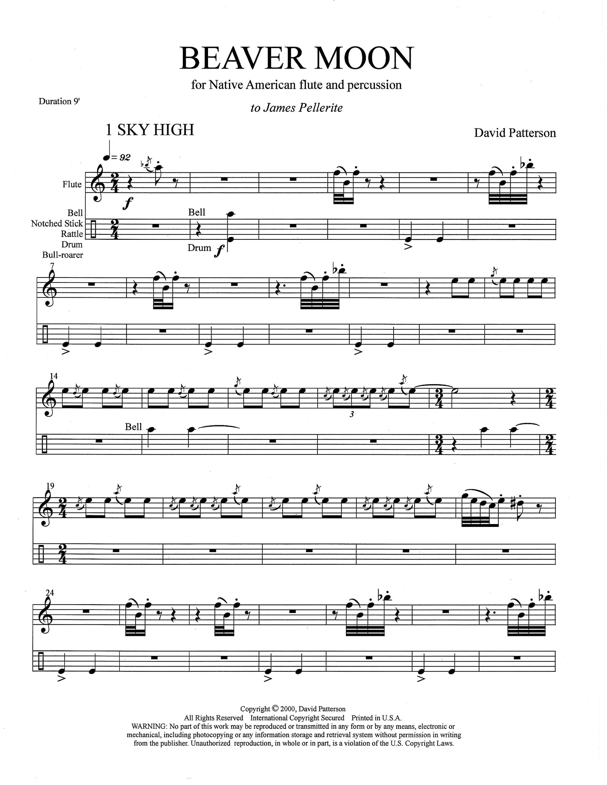 Native American flute with percussionist, including drum, rattle, guiro, bell or triangle, and bullroarer