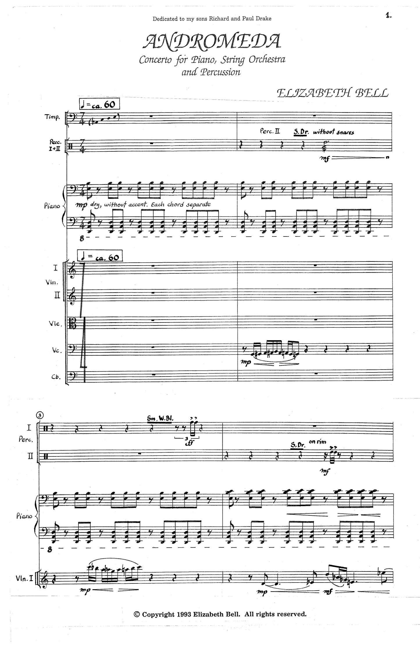 Concerto in One Movement for Piano, Percussion, & Strings. Commissioned by Vienna Modern Masters.
