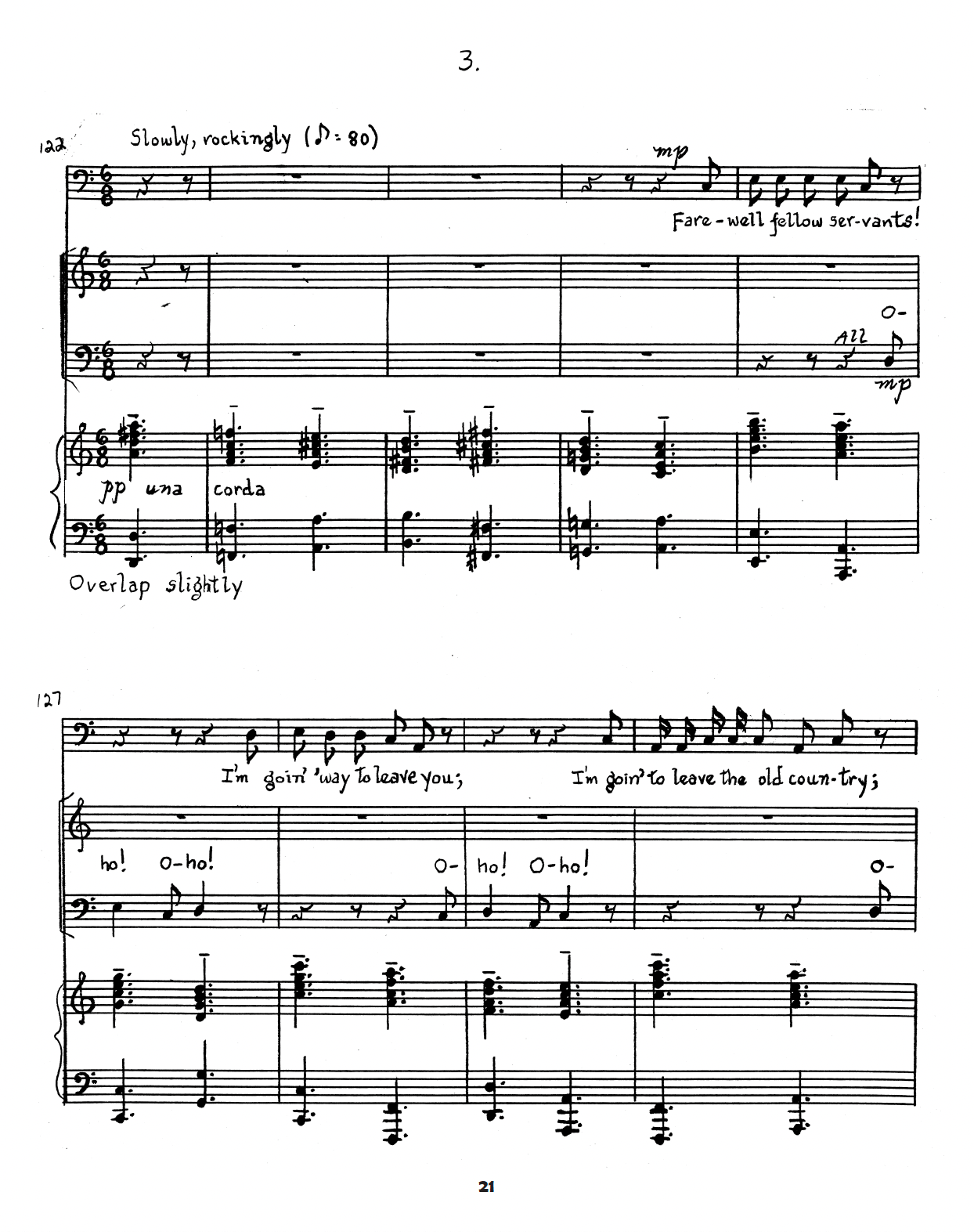 The third section of the work uses a tune known from the nineteenth-century (to that lyric), and I have provided it with a harmonization that transcends the concept of tone, but still based upon it.