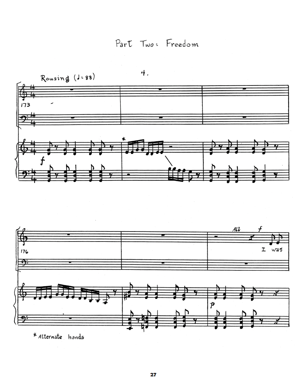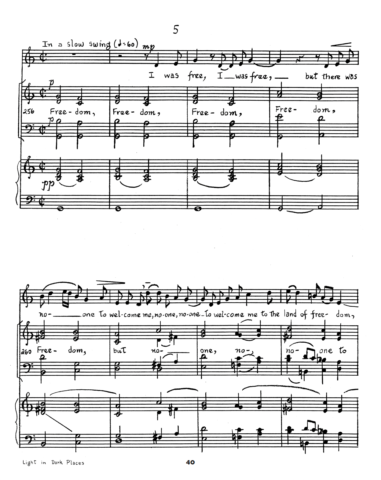 Movements: Part 1: Slavery (3 movements) Part 2: Freedom (2 movements)