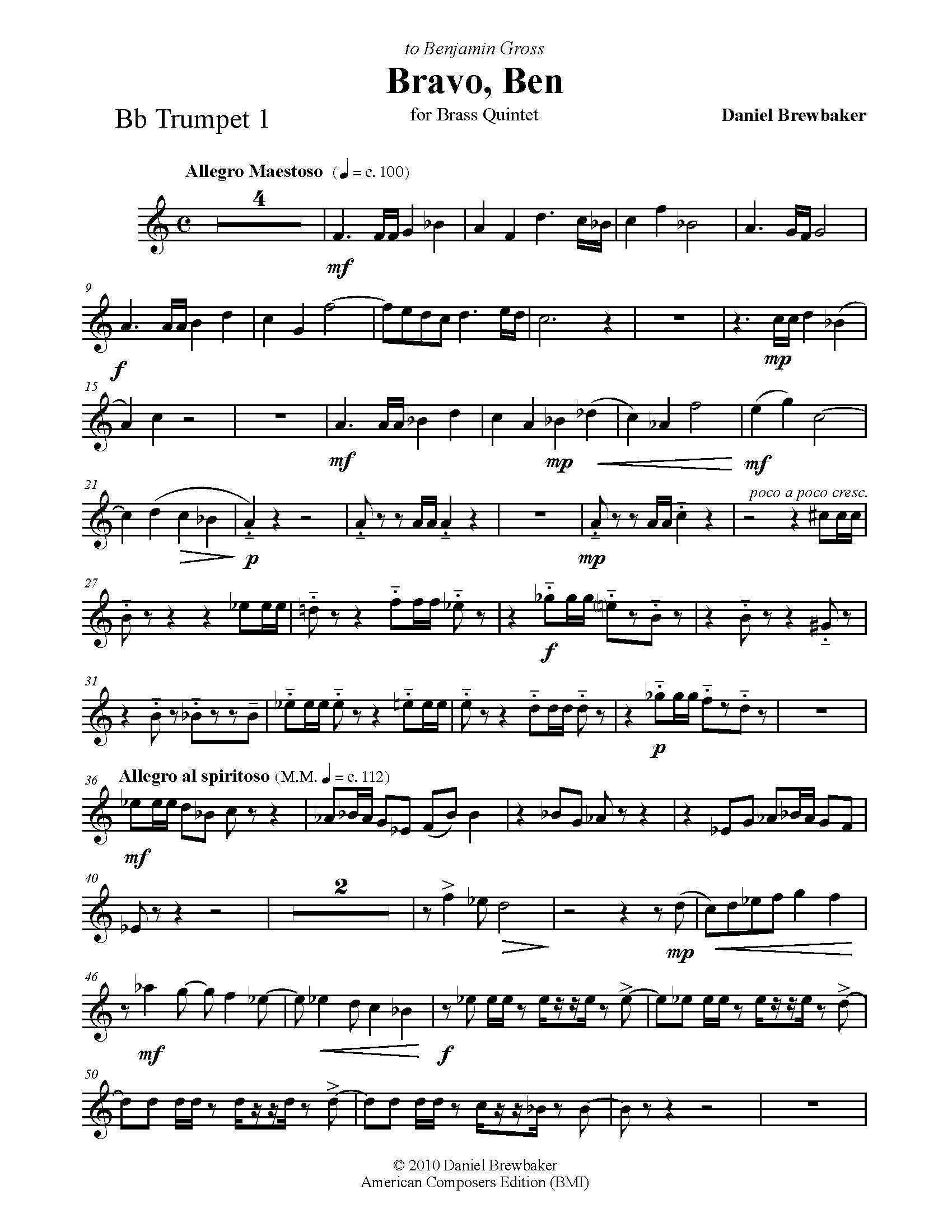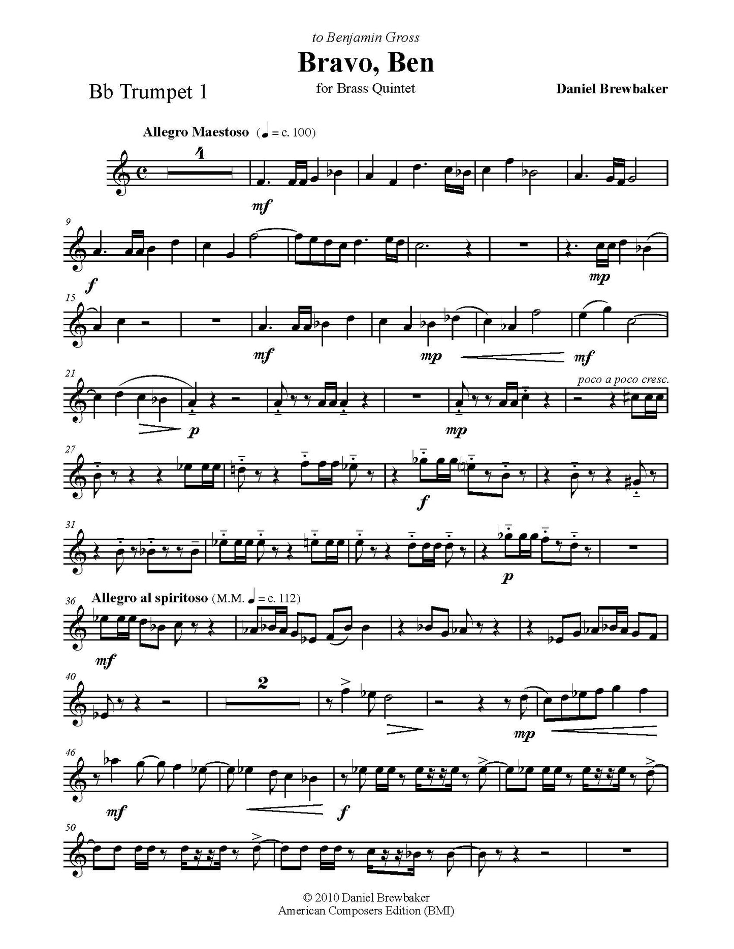 First performance: August 8, 2010, Elgin, IL; Elgin Youth Symphony Orchestra Brass Quintet