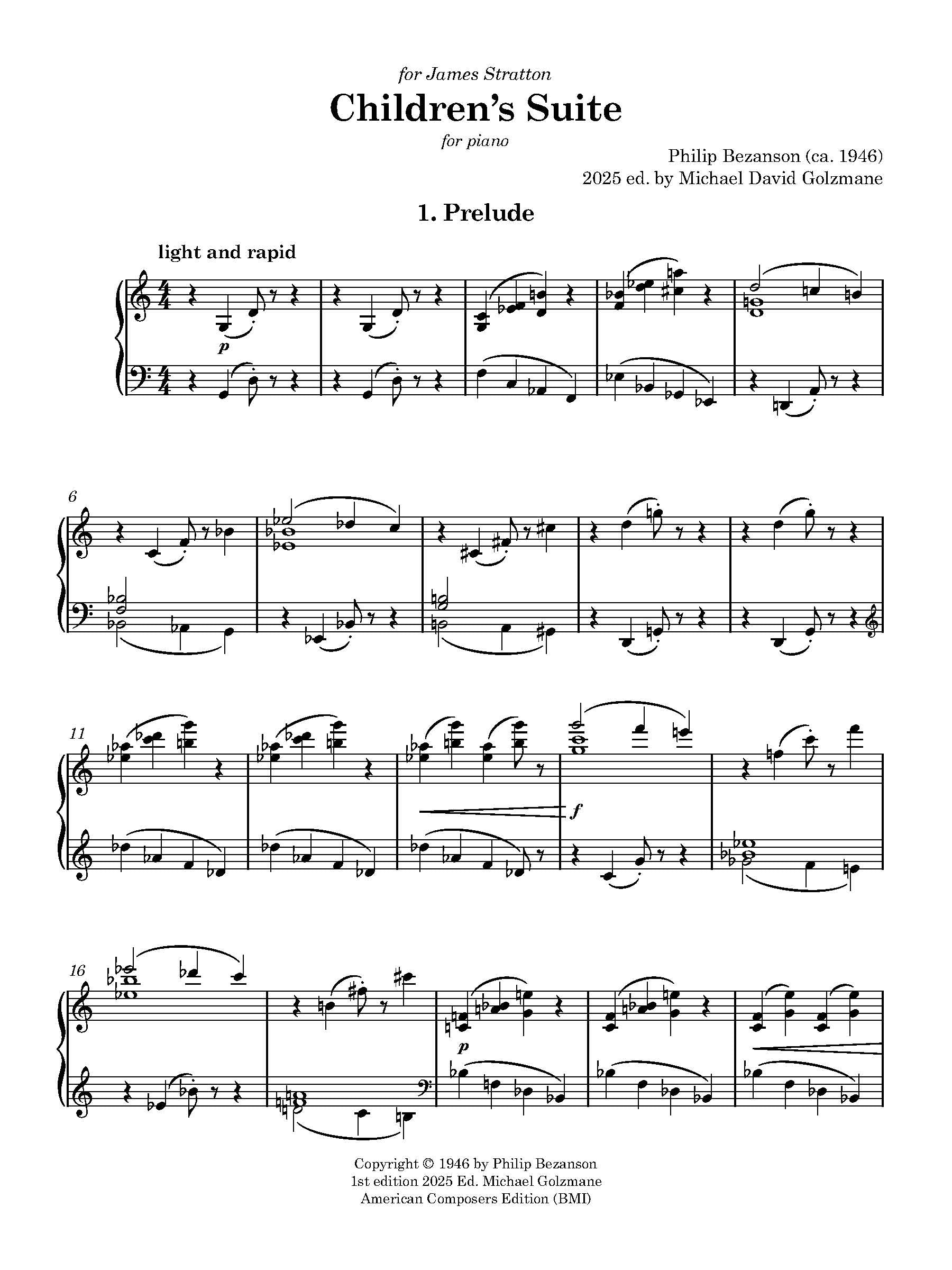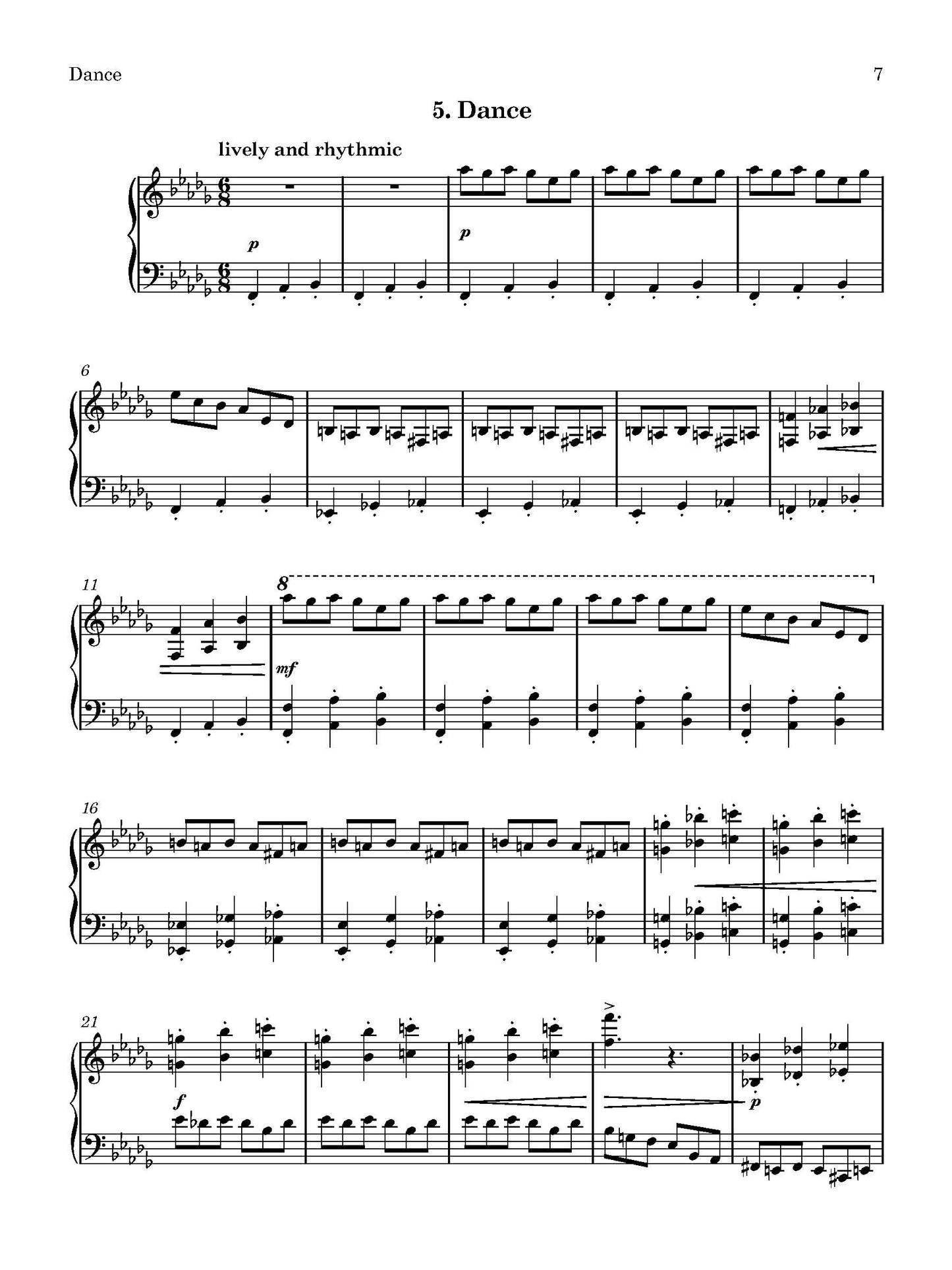Movements: 1. Prelude 2. Tease Tune 3. March 4. Lullaby 5. Dance