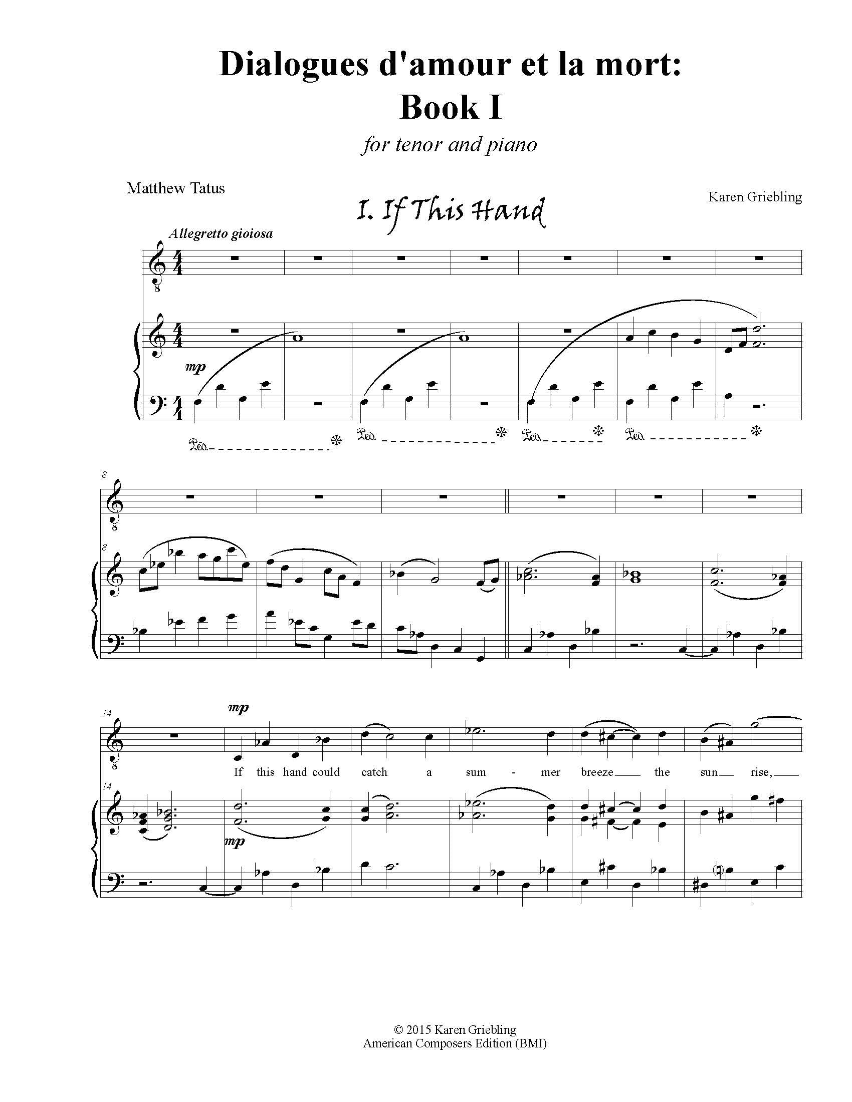 First performance: 2015; Matthew K. Tatús, tenor; Karen Griebling, piano