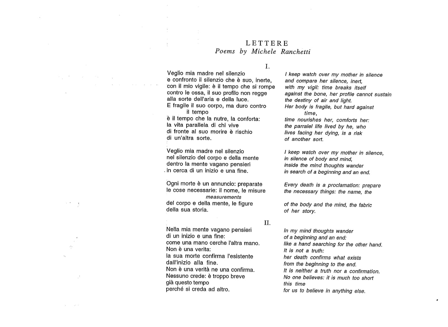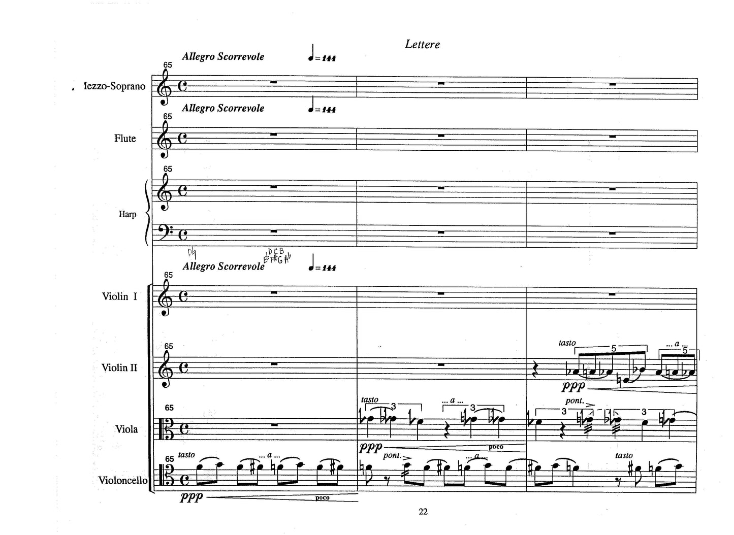 First performance: Premiered by the University of Chicago chamber Players on April 21, 1995 Stephen Mosko, conductor, Nelda Nelson, mezzo-soprano