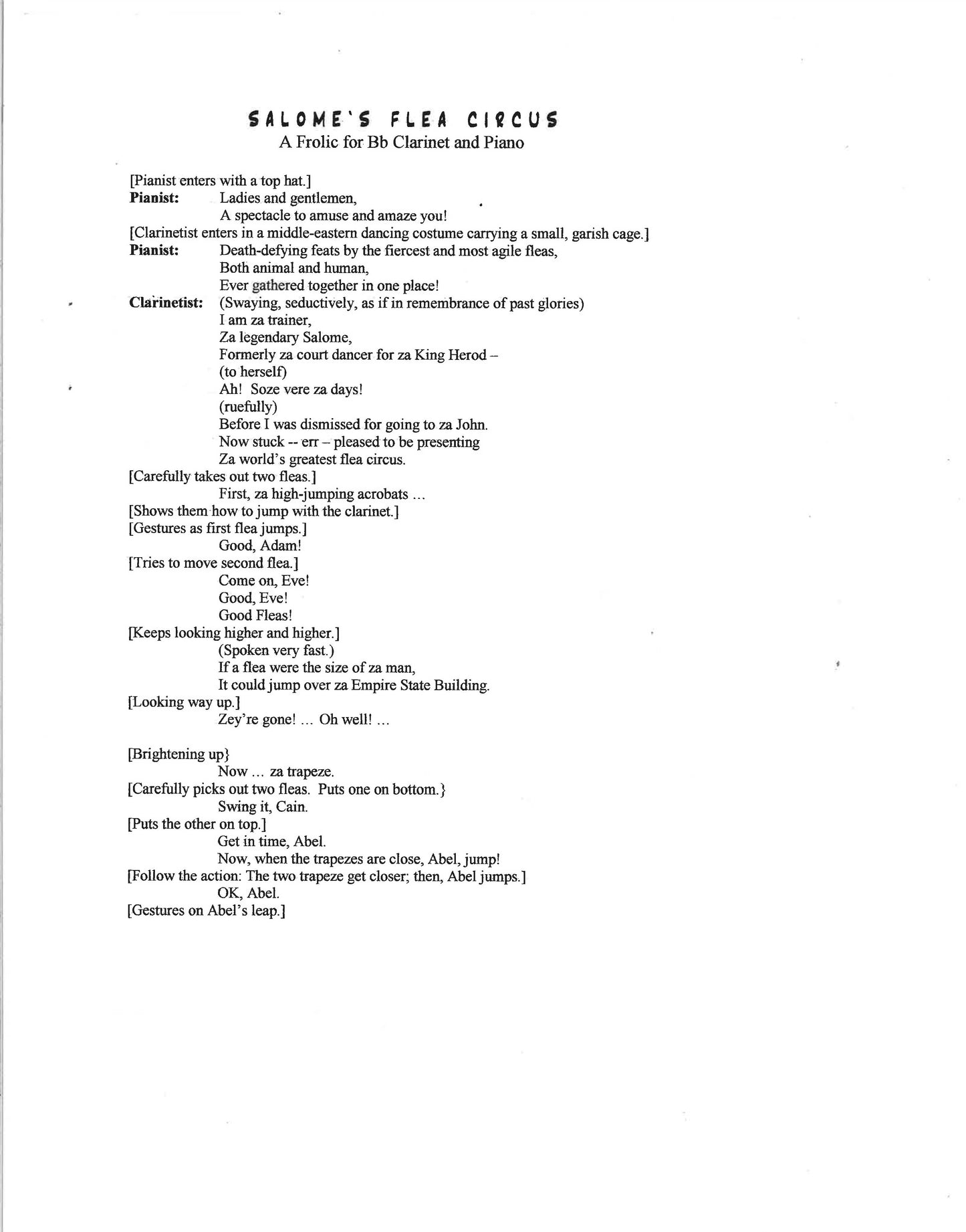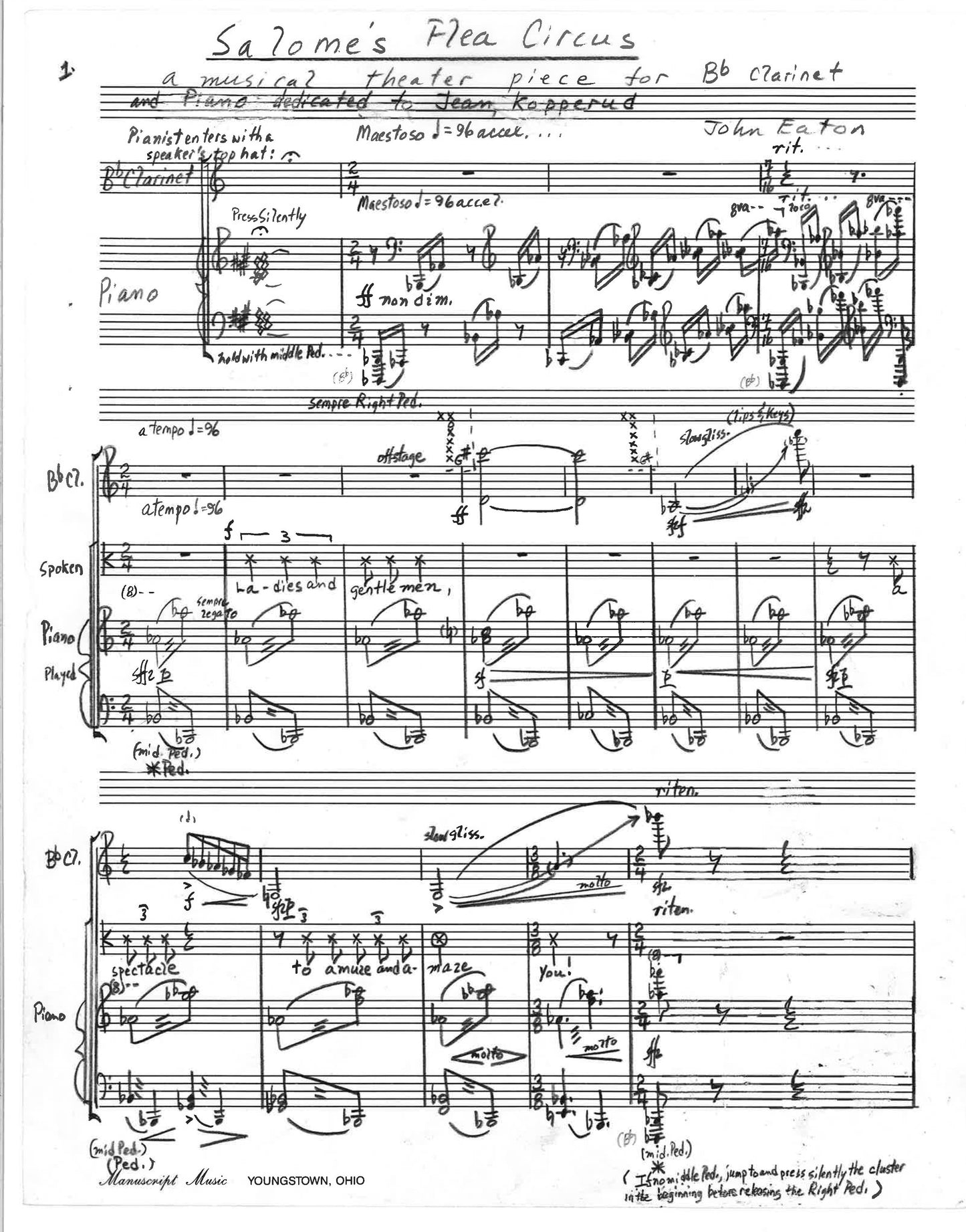 First performance: premiered by Jean Kopperud and Steven Gosling with the Pocket Opera Players at Symphony Space, June 24 and 25, 2003