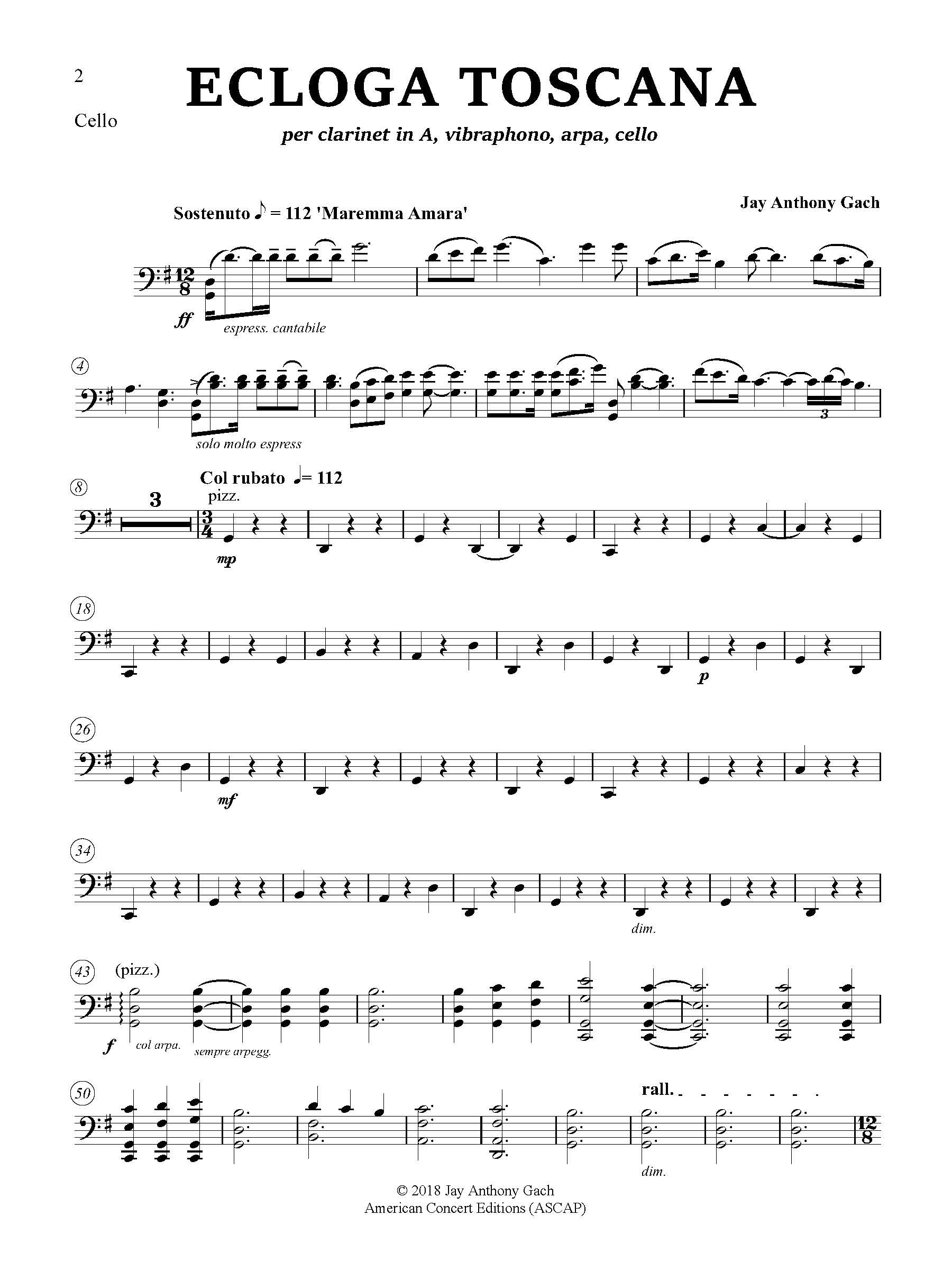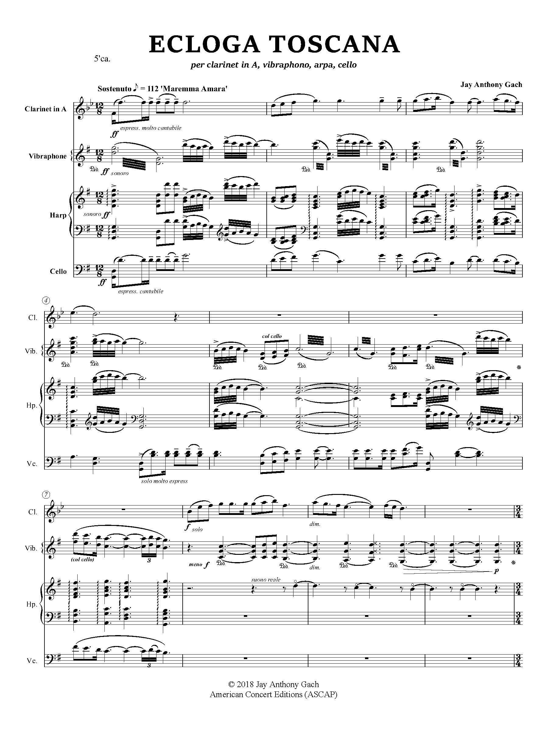 Ecloga Toscana (Tuscan Eclogue) makes use of a Tuscan folk song 'Maremma Amara' in various settings throughout the piece.