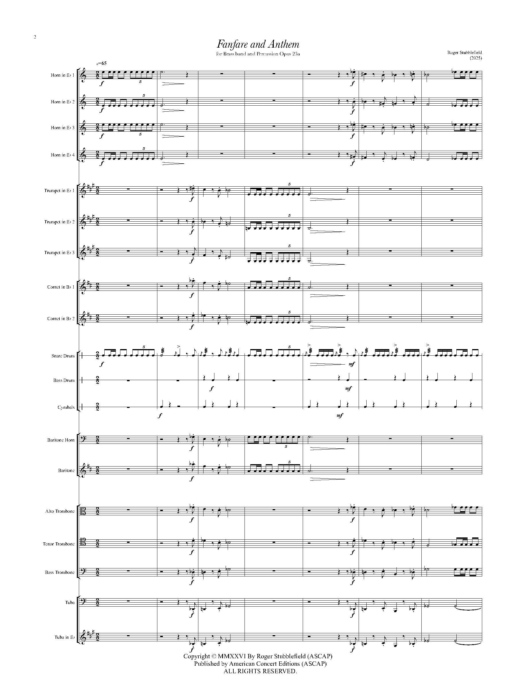 Roger Stubblefield » Fanfare and Anthem, Op 23a - For Brass Band and Percussion