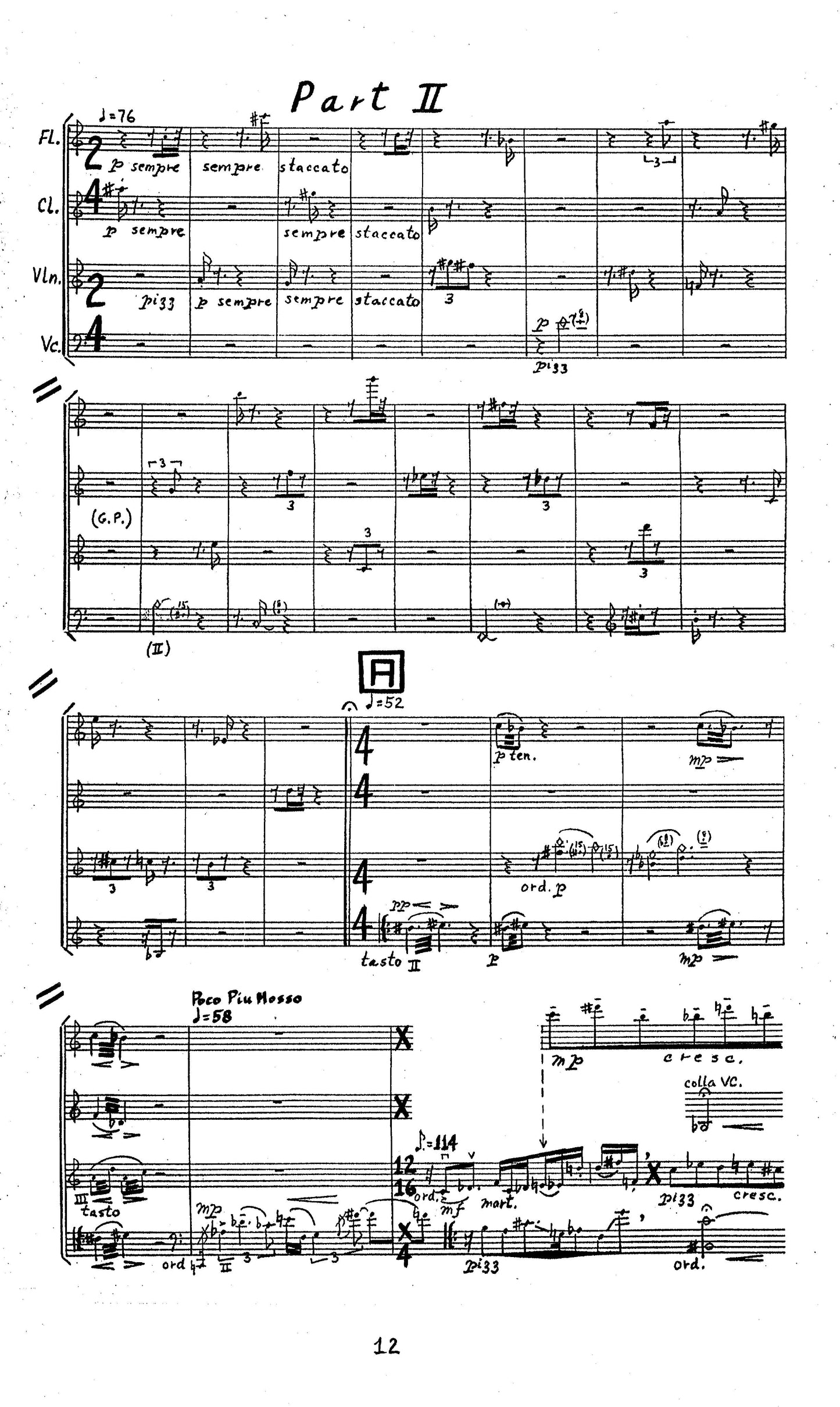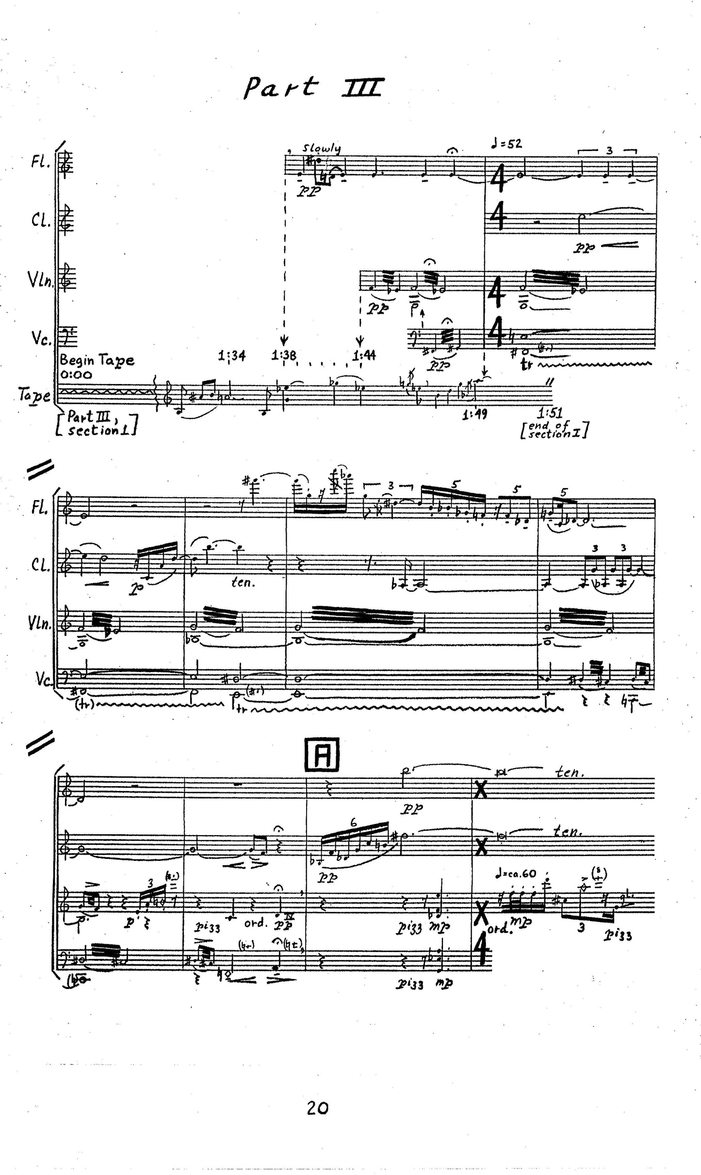 a coloristic work for instruments and electronic tape (now CD) exploring interactions between live and recorded elements. Recorded by the Da Capo Chamber Players on CRI CD 759.