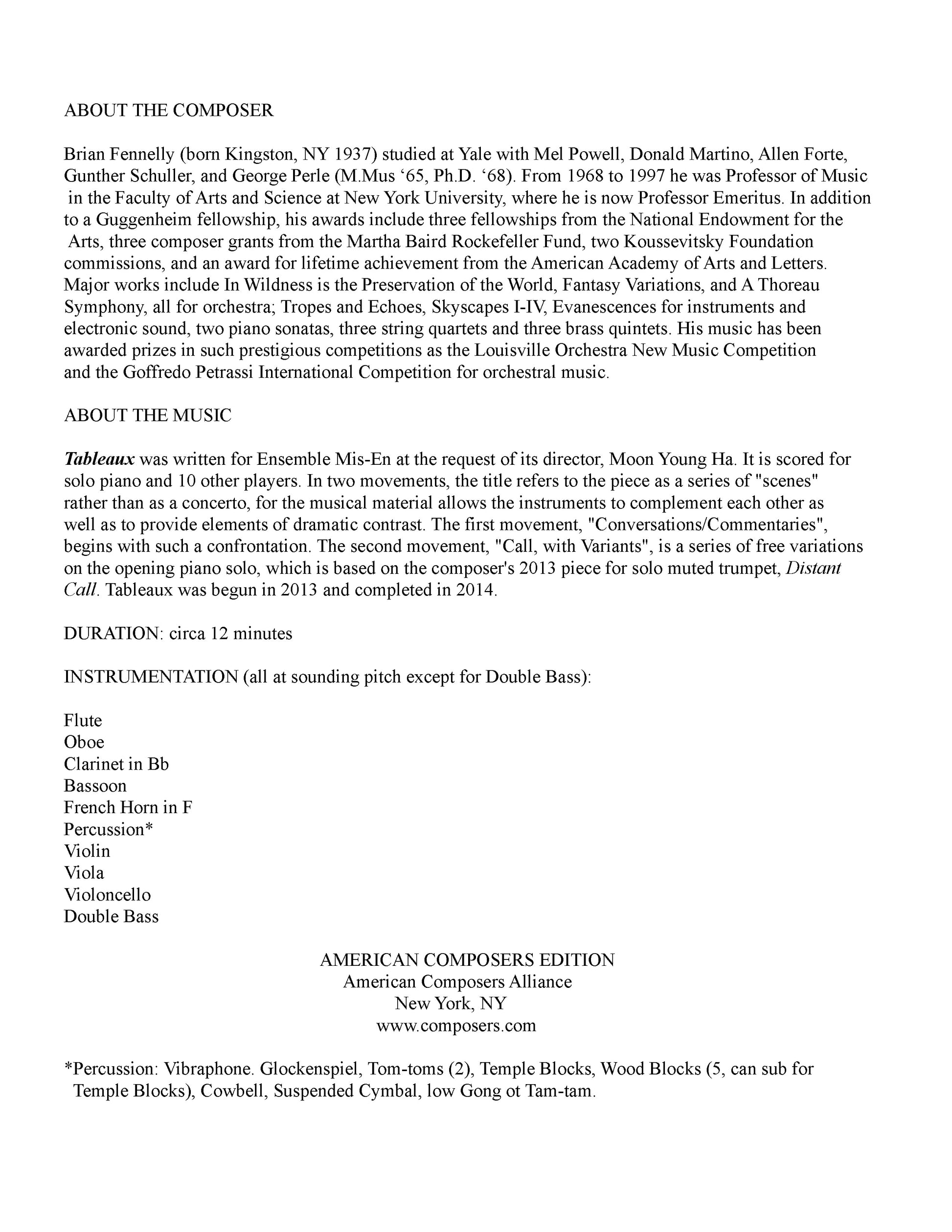 Tableaux: Chamber Concerto for Piano and 10 Instruments