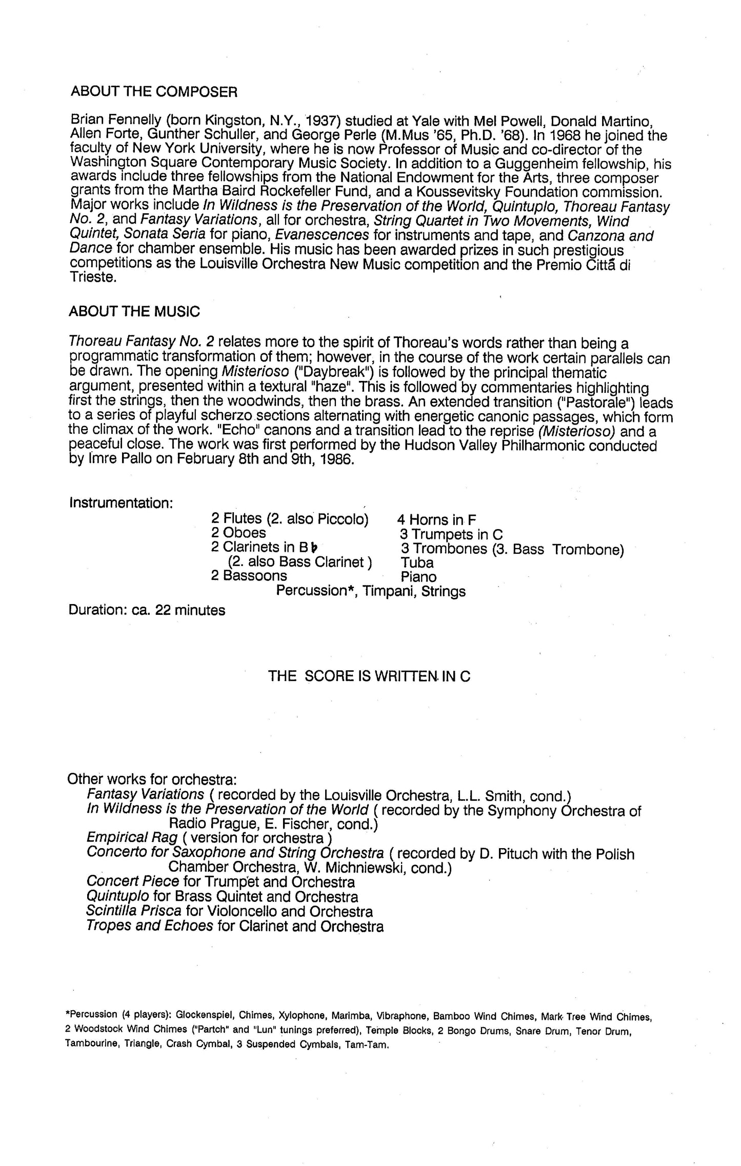 Thoreau Fantasy No 2 for Orchestra (Ambrosial Mornings, 1984-85)
