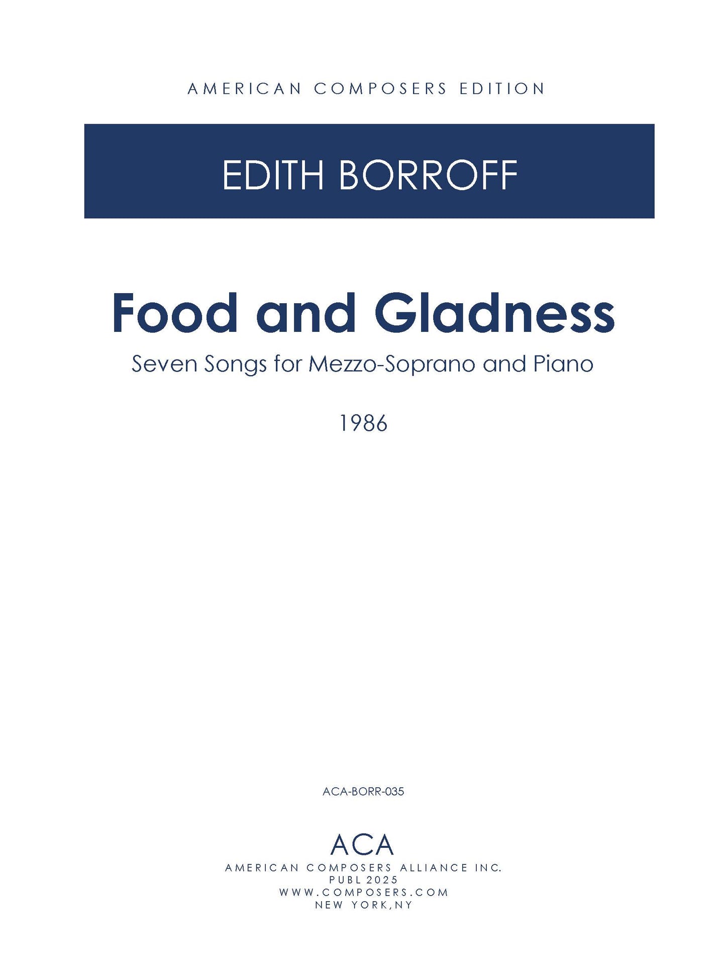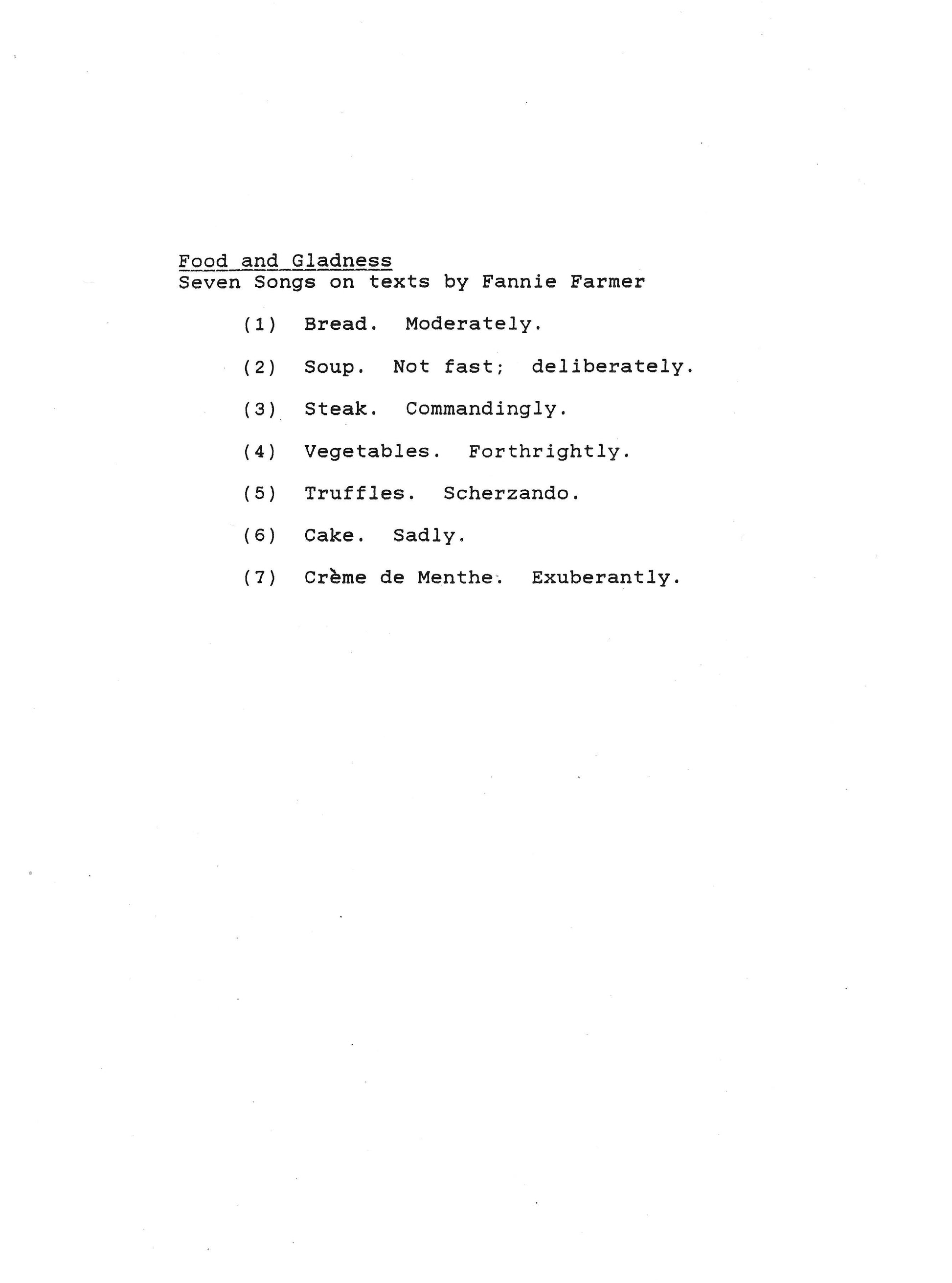 Food and Gladness: Seven Songs to Texts by Fannie Farmer