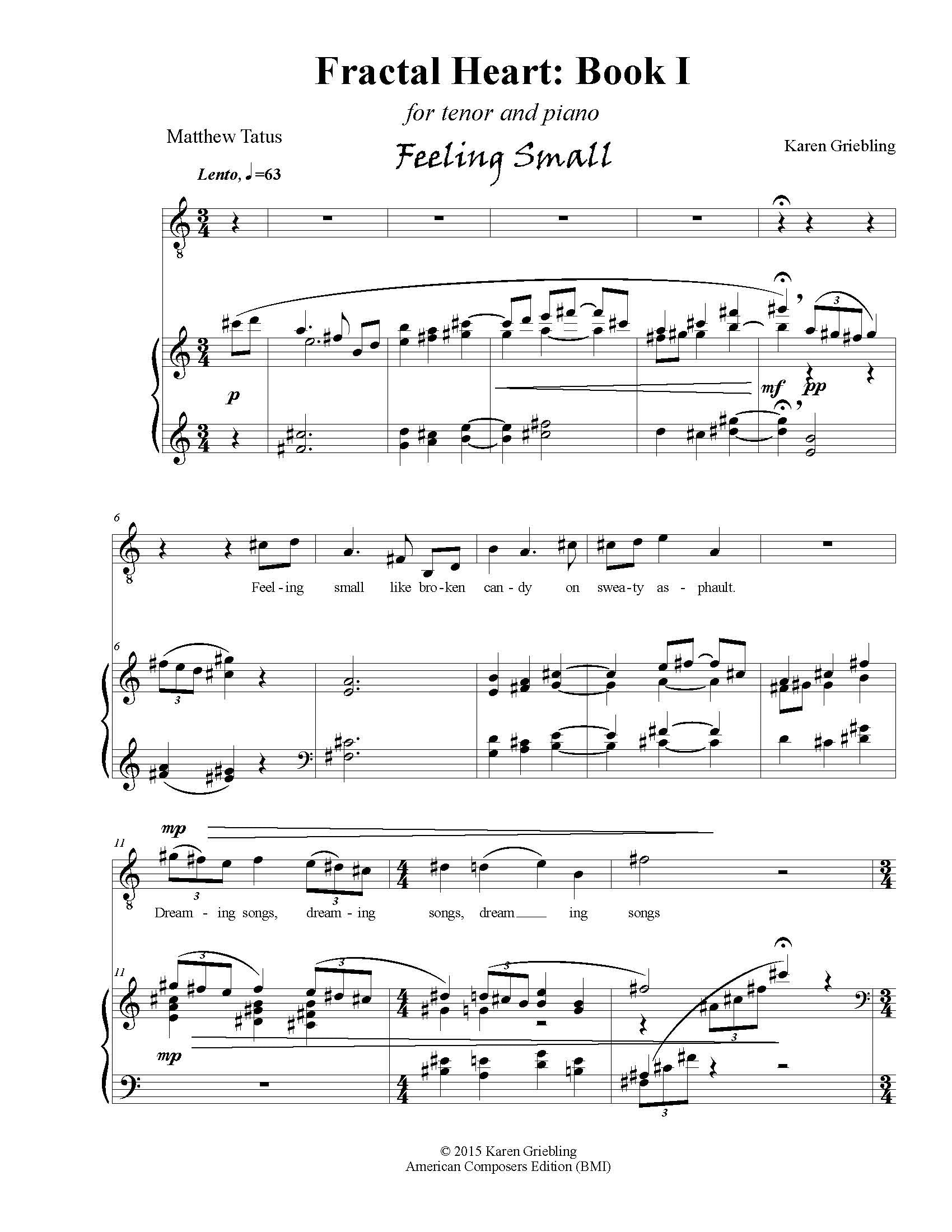 Fractal Heart comprises four song cycles of settings of poems by Tenor, Matthew K Tatús and Karen Griebling, for high voice and piano.