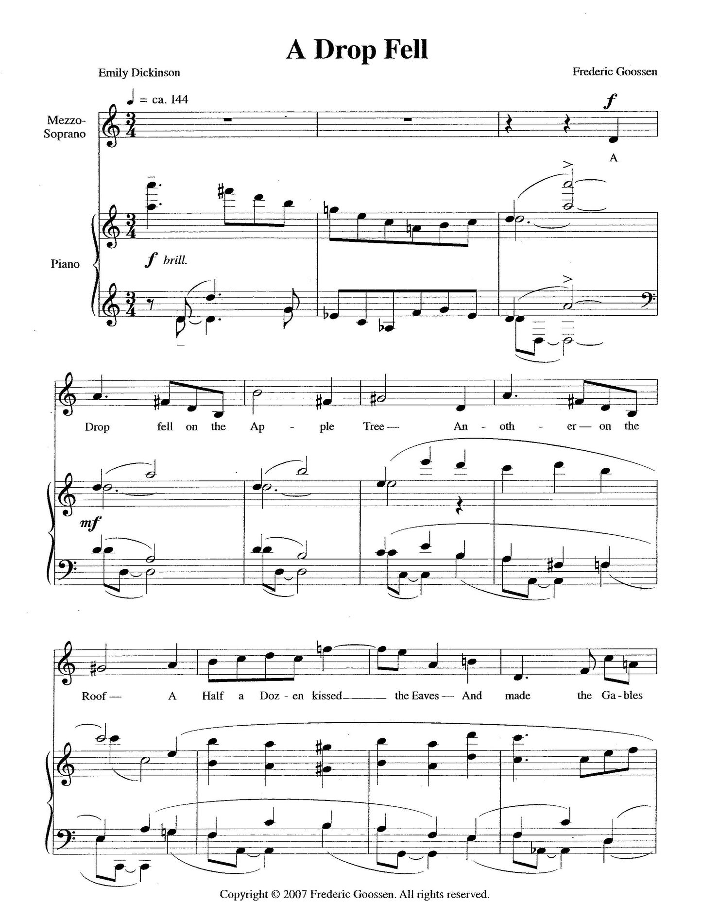 Text source: Poems by Dickinson used by arrangement with publishers and trustees of Amherst C.