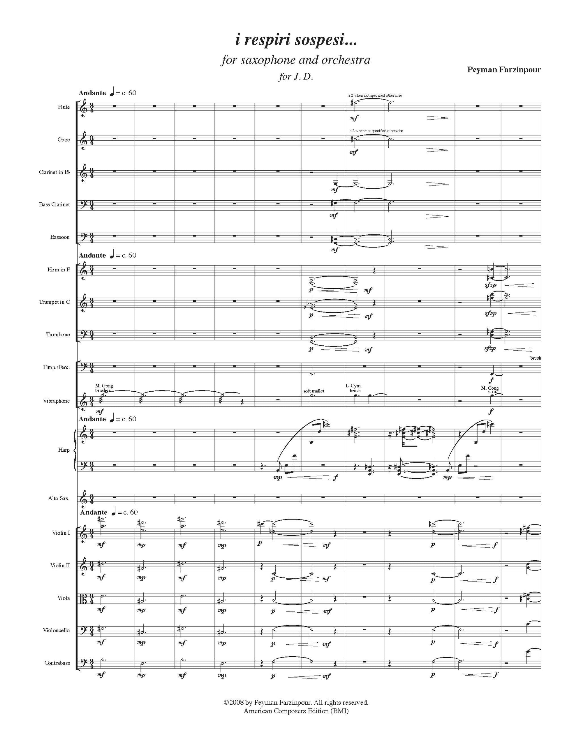 Alto Saxophone and Chamber Orchestra 112(2=bcl)1 - 1110 - 2 perc, hp - alto sax solo - strings