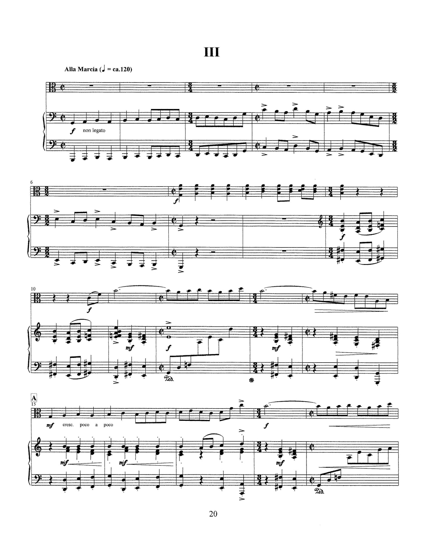 Three movements: Moderato-Scherzando; Andante-Presto-Andante; Alla Marcia