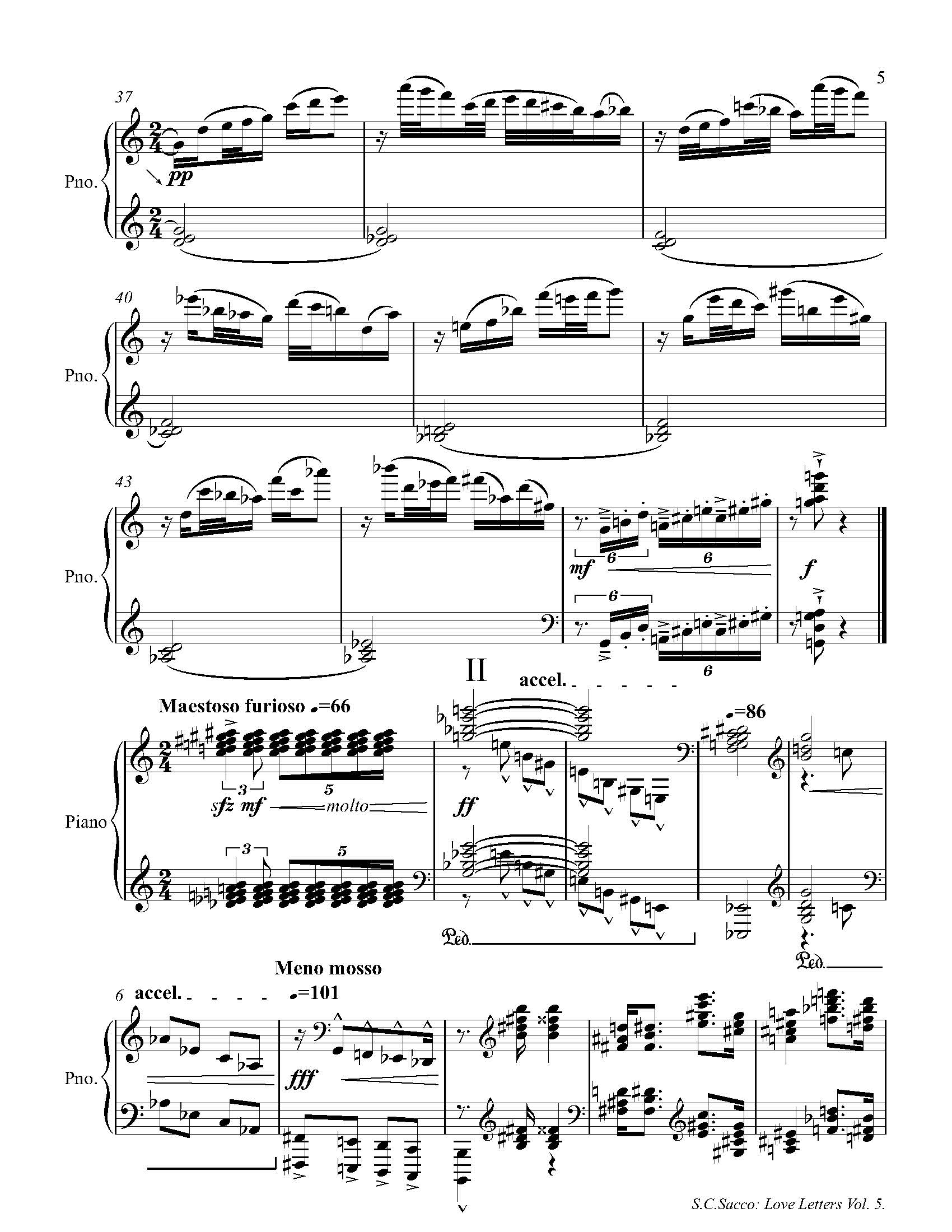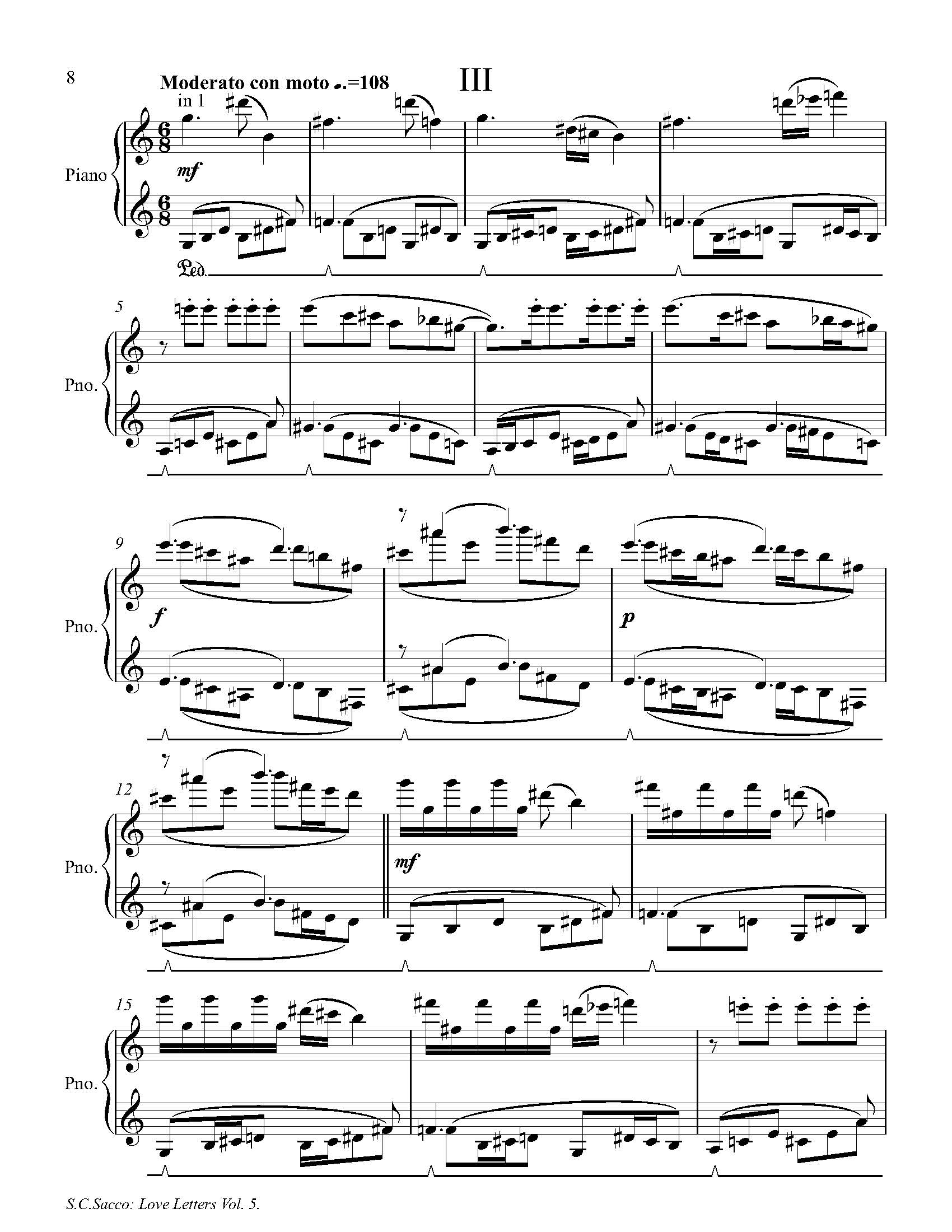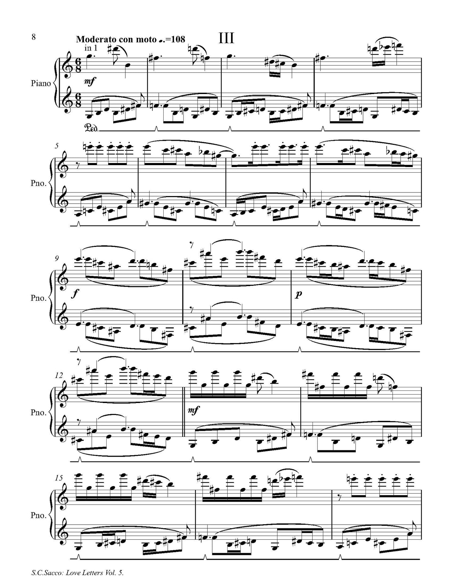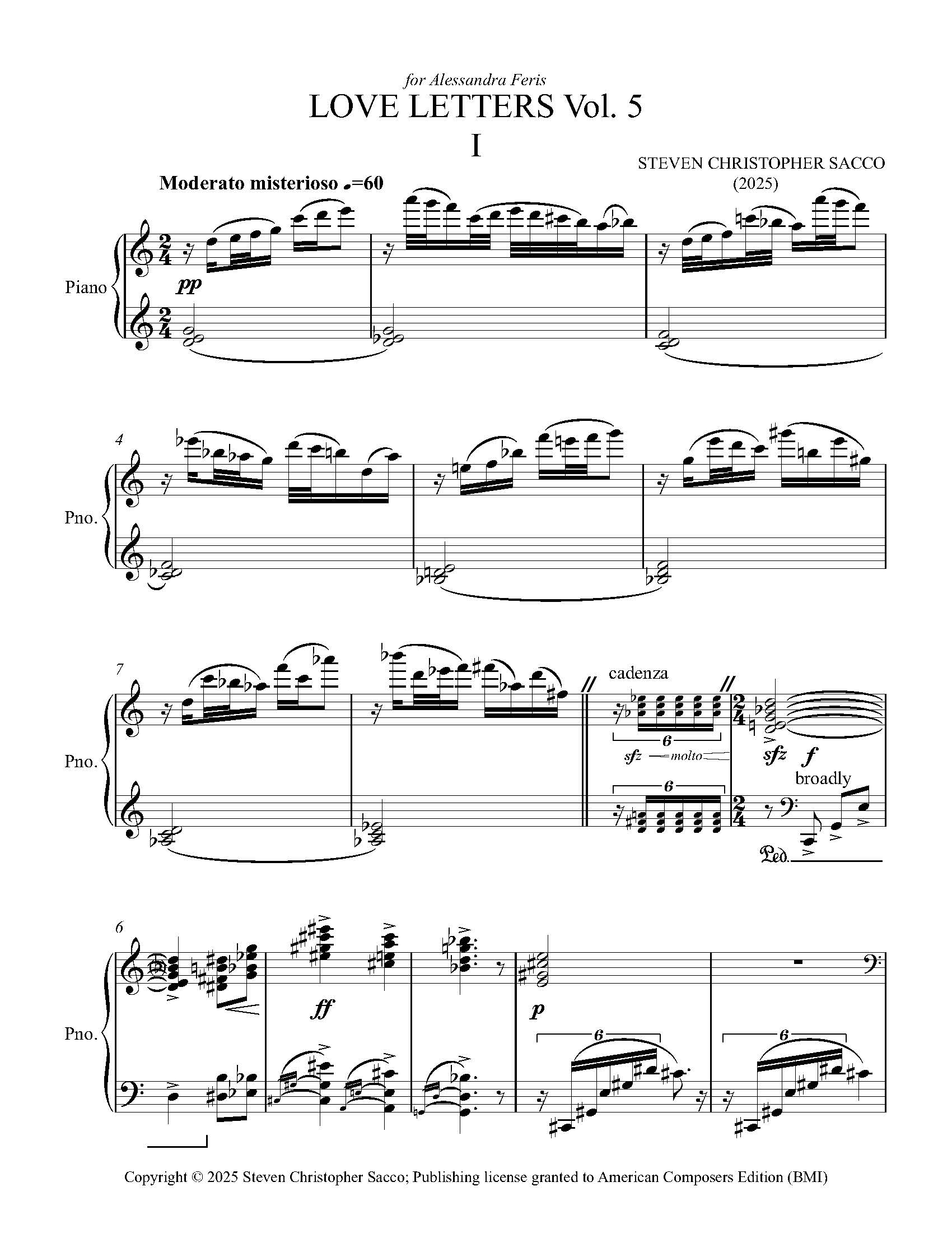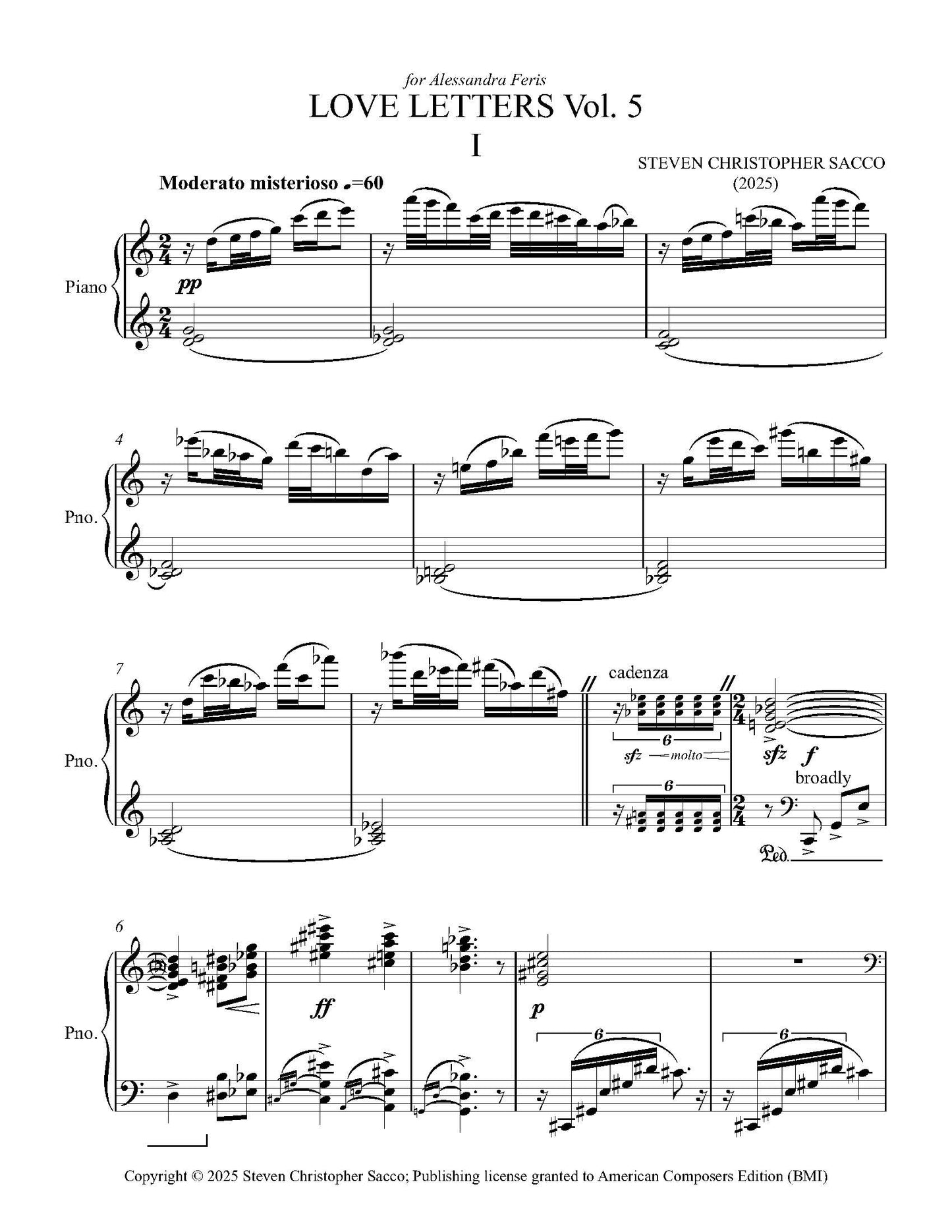 Love Letters Vol. 5 is part of a series of miniatures with the same title.  These are “love letters” to the piano - the instrument I love.