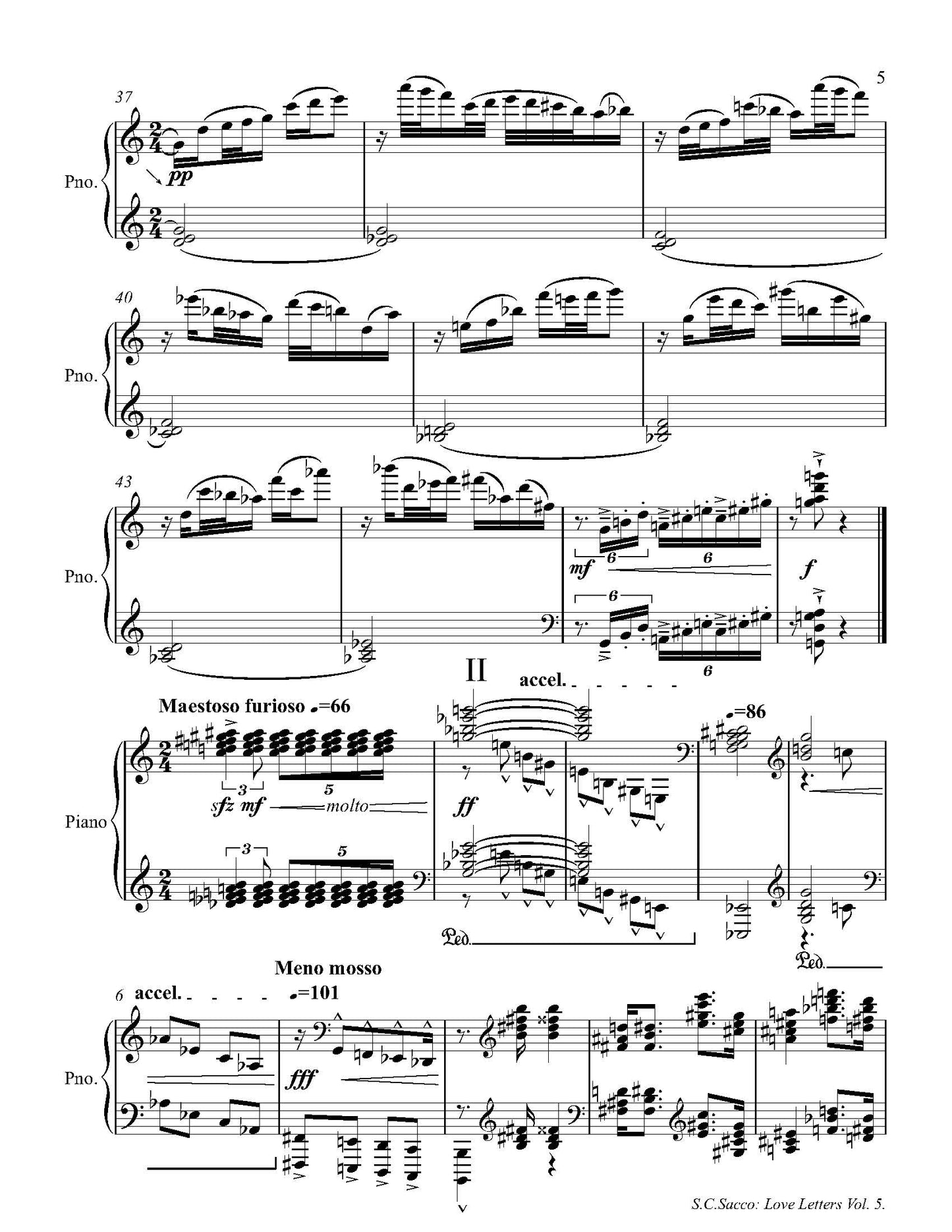 Movements: I. Moderato misterioso II. Maestoso furioso III. Moderato con moto IV. Lento V. Little Piece In Quarter Notes