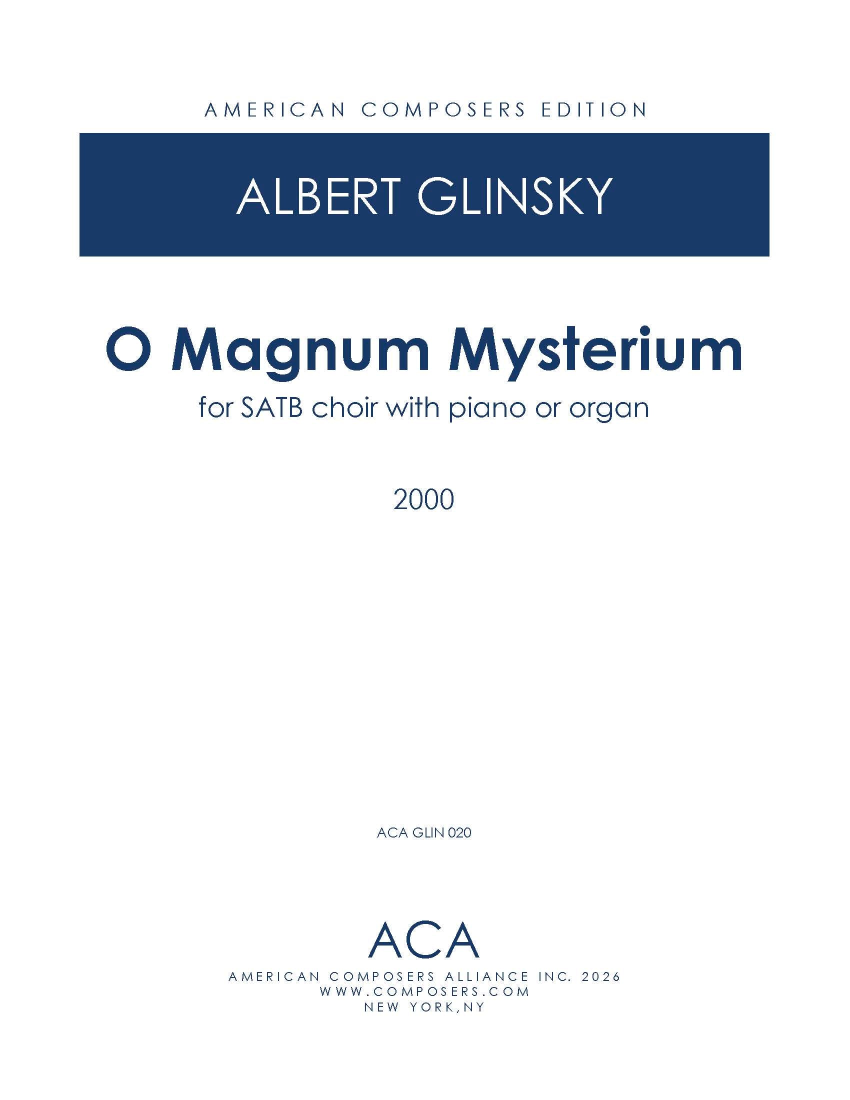 Albert Glinsky » O Magnum Myterium