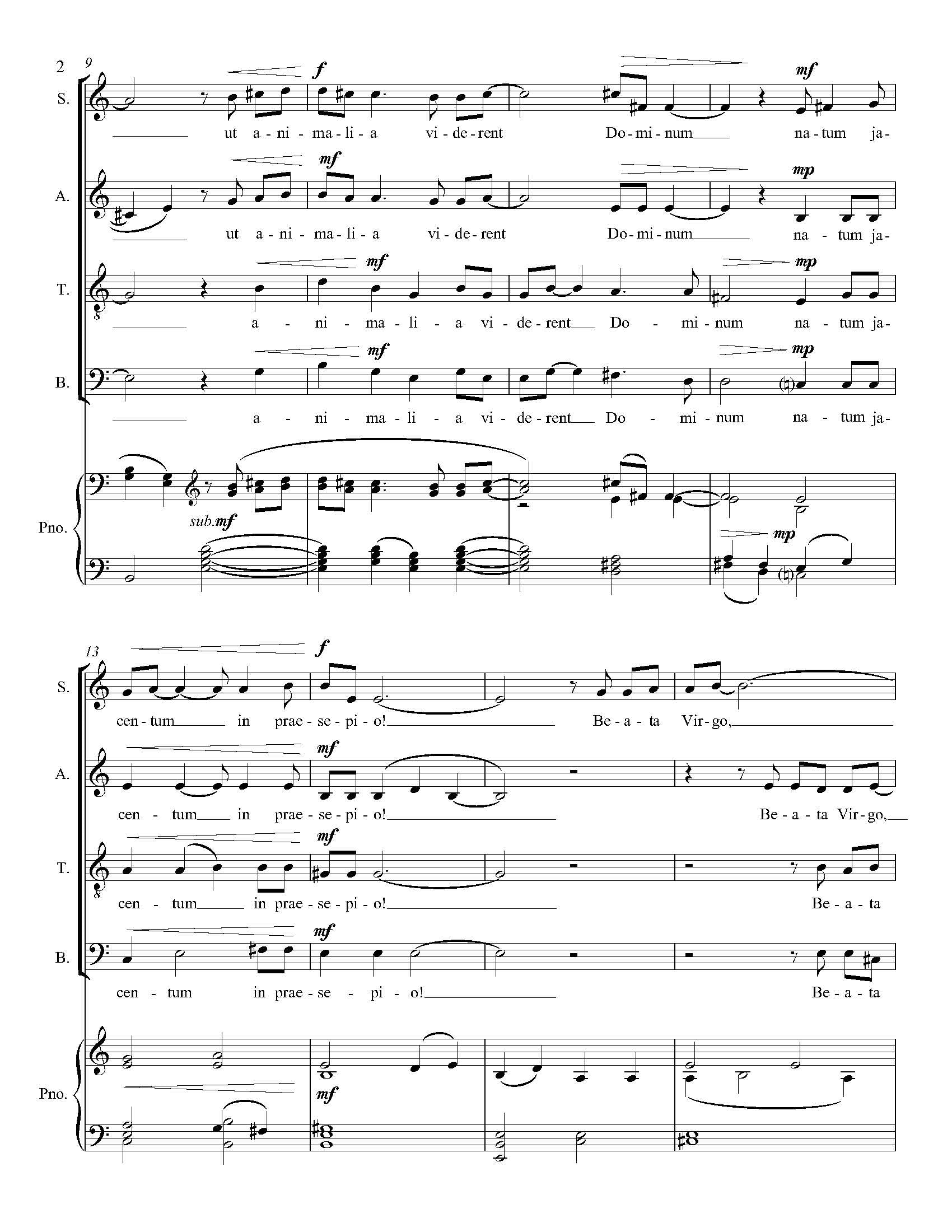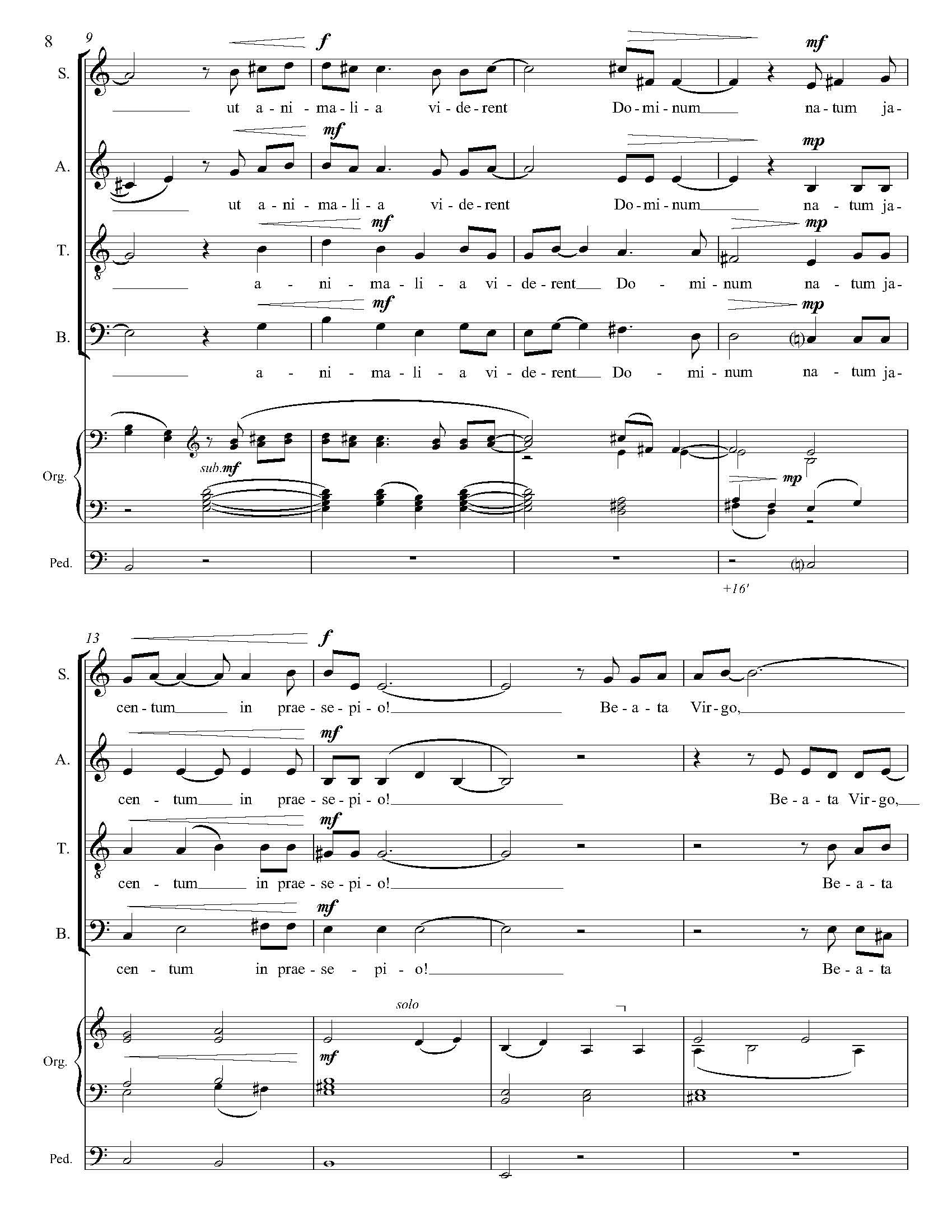 O Magnum Mysterium is a traditional Latin text for the Holy Matins of Christmas, dating from the 10th century. The current setting was written to commemorate the 2000th anniversary of the birth of Christ, and received its premiere on Christmas Eve 2000. The words express the simple sentiment of mystery and awe at the sight of the newborn Christ among the animals in the manger, and the miracle of the Virgin birth. This short setting is appropriate for both liturgical use and performance in choral concerts. It works equally well with either piano or organ accompaniment.