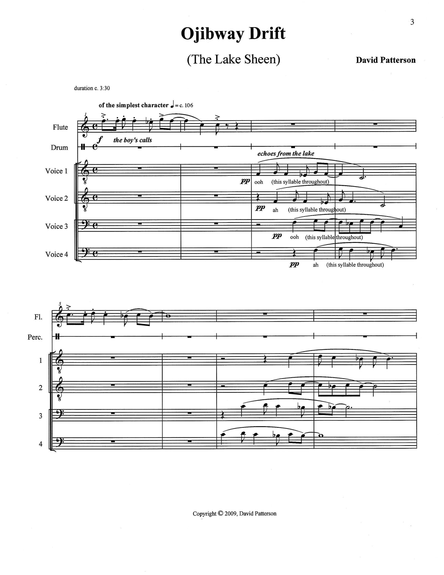 Native American flute, mixed choir, drum