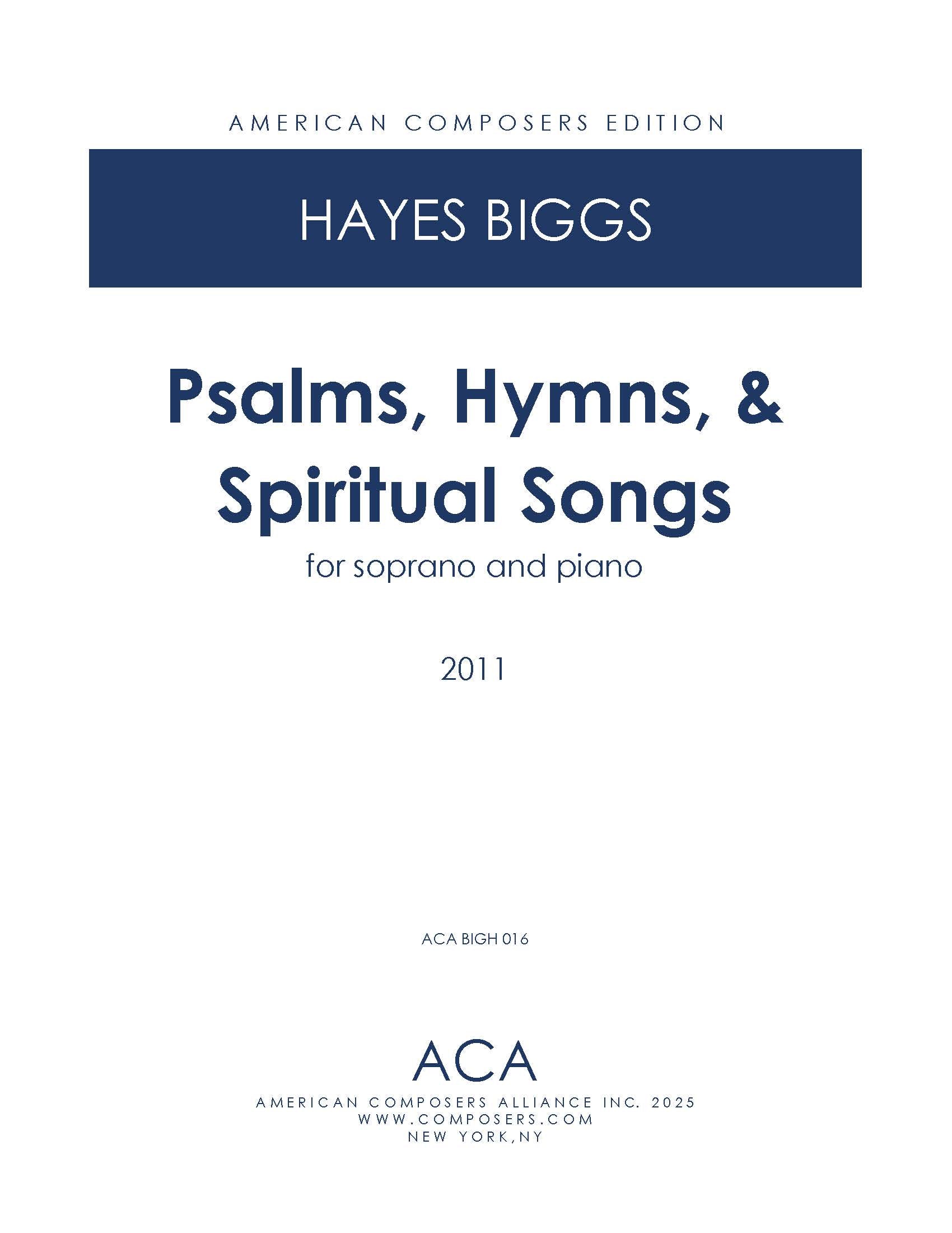 Psalms, Hymns, & Spiritual Songs is my first major cycle for voice and piano. Its title comes from St. Paul’s Epistle to the Ephesians (5:19), in which he exhorts them to address one another “in psalms and hymns and spiritual songs, singing and making melody in your heart to the Lord” — virtually a definition of devotional poetry. The cycle’s genesis was my desire to set Gerard Manley Hopkins’s “God’s Grandeur,” a poem I’ve known and loved since I was introduced to it in high school by my English teacher Vera Miller. My initial musical idea for the Hopkins setting — which is dedicated to Mrs. Miller’s memory — came in the late 1980s, years before I got around to the actual composition of the song, which I completed in 2005. The sheer length of the setting seemed to dictate that it would be part of a sizeable work, and the search for other suitable poetry ensued. The form that the cycle took was that of two large songs bookending the structure: the Hopkins at the end, and verses from Psalm 139 at the beginning. The four songs in the middle are of more modest dimensions, ranging from a metrical version of Psalm 121 by a 17th-century Puritan minister to poems by George Herbert, Sri Aurobindo Ghose and the contemporary American poet Jane Kenyon. The entire cycle is dedicated to its first performers, Susan Narucki and Christopher Oldfather, with gratitude, and a few other dedications should be mentioned: “From Psalm 139,” to the memory of my father, William Winstead Biggs; “Psalm 121” to my friend and MSM colleague Mark Stambaugh, “Vertue” to the memory of my great-aunt and great-uncle Mary Jo and Phil McGary, and “The Bliss of Brahman” to the memory of Alexandra Montano, a great singer and wonderful artist.