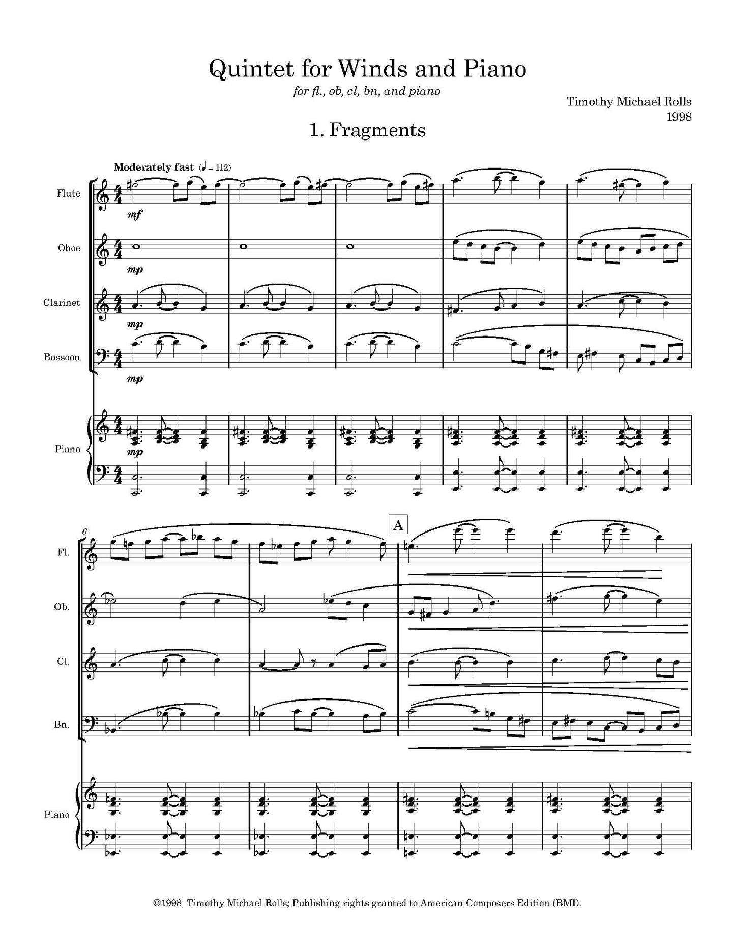 The first movement, Fragments, literally grew from a series of pieces that were thrown out from other pieces (I can no longer remember which pieces).