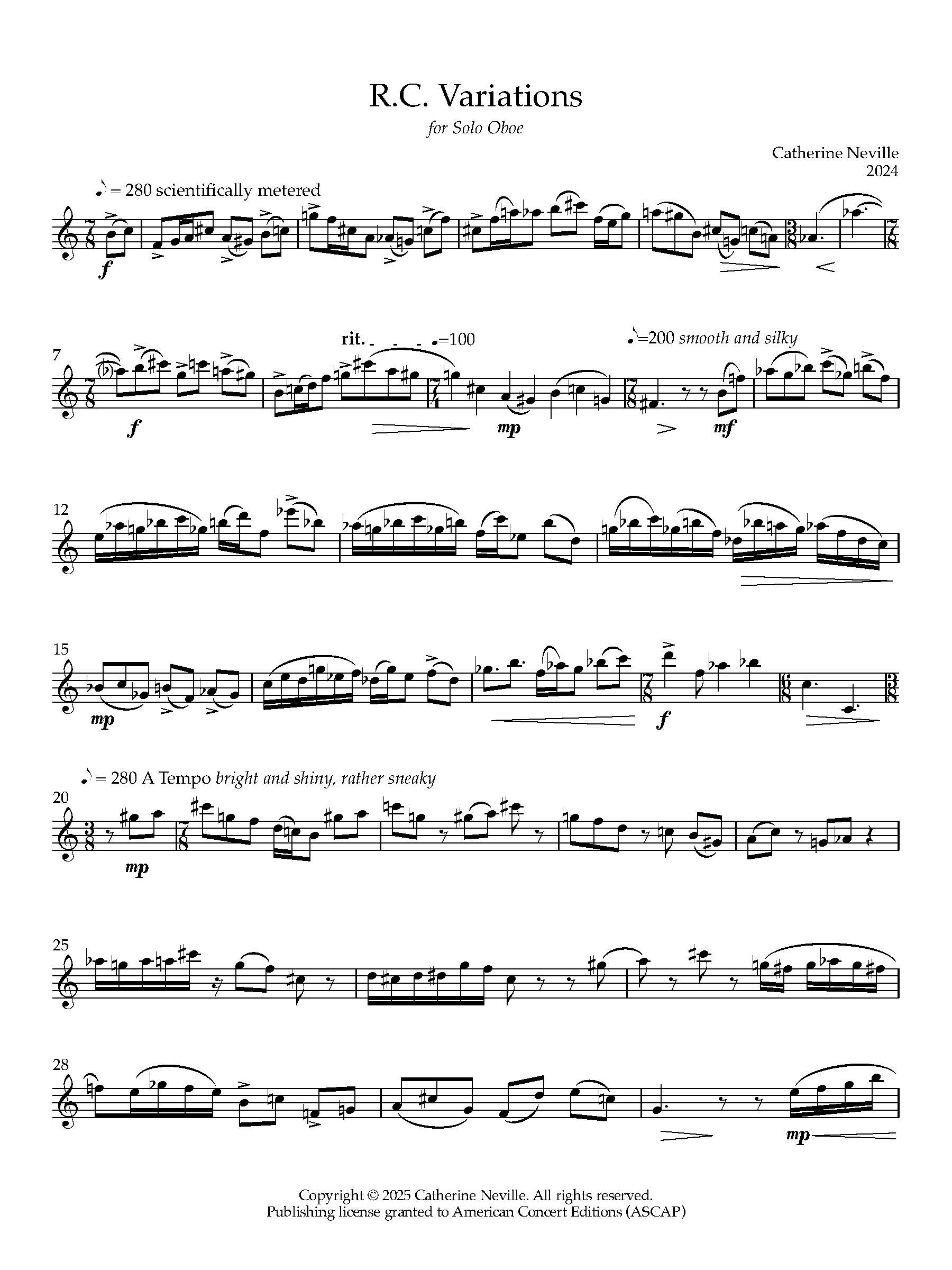 Dedicated to the memory of Ruth Crawford (1901-1953), 'R.C. Variations' takes as its inspiration the Allegro from her 'Diaphonic Suite No. 1' for Solo Oboe.
