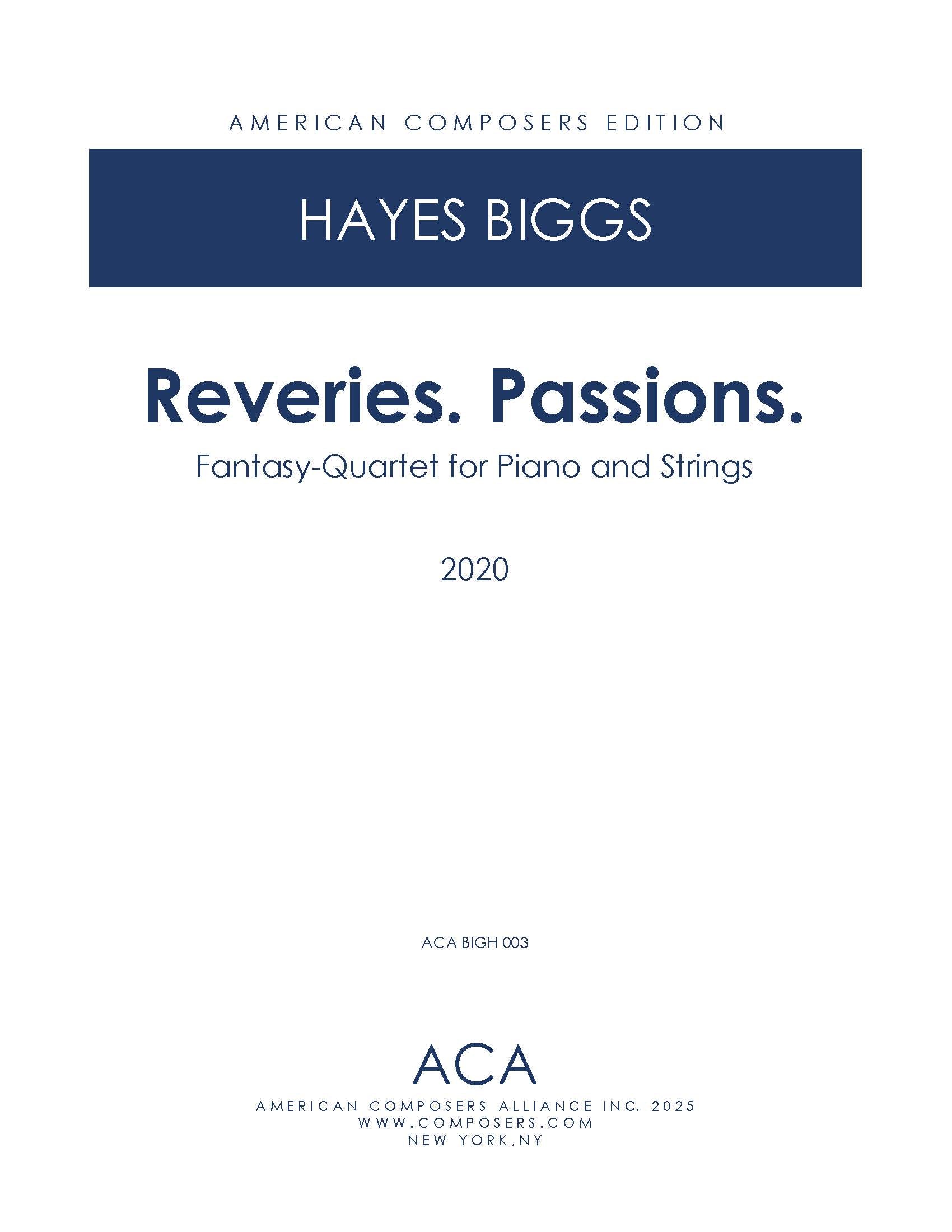 When I began writing Reveries. Passions., I spent time looking at and listening to many quartets and quintets for piano and strings, from the standard ones by Mozart, Brahms, and Fauré to more modern examples by Aaron Copland and my first composition teacher Don Freund, but the one that had the most profound effect on me was Schumann's Piano Quartet in E-flat major, Op. 47, particularly its slow movement, with its beautiful cantilena and the scordatura low B-flat pedal point in the cello at the end. I quote from the opening of Schumann’s first movement near the conclusion of my quartet. Here is a brief synopsis of the three movements of Reveries. Passions.: