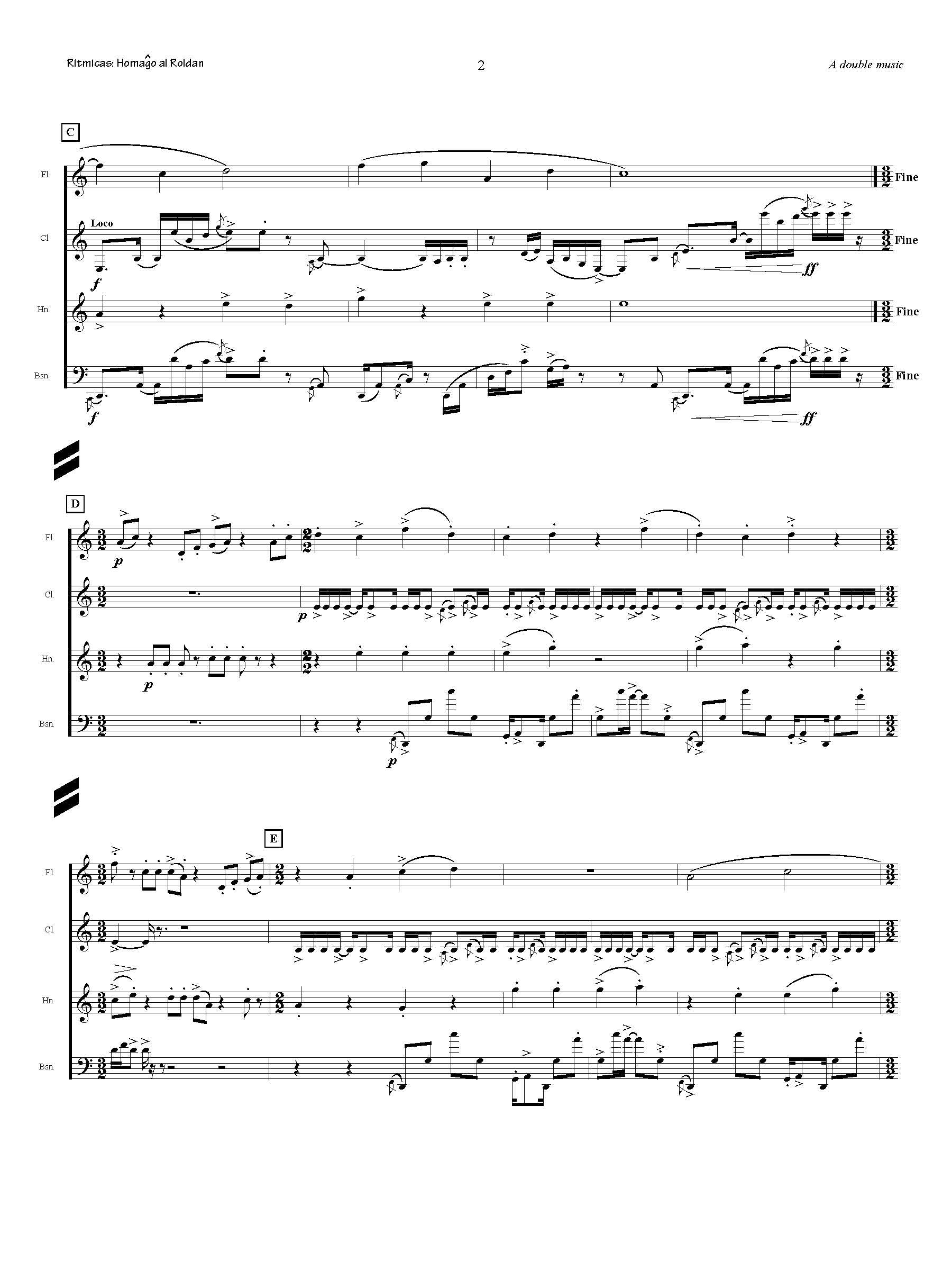 bassoon and horn. While the ‘double’ refers to the co-composition, it can also point to the musical interest of this ritmicas, the two rhythmic meters – 2/2 and 3/2 – played