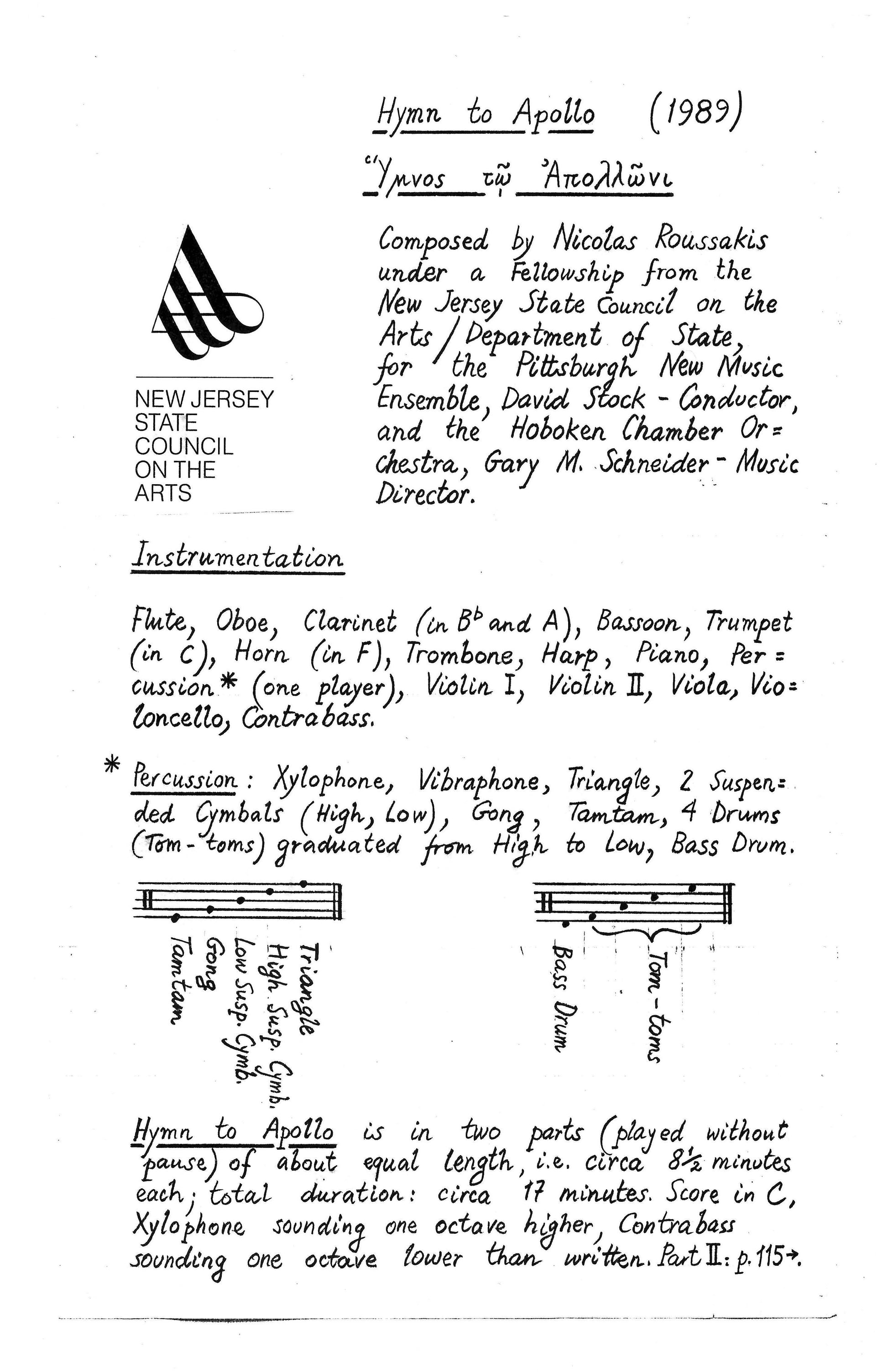 Composed for the Pittsburgh New Music Ensemble, David Stock, conductor; Also for the Hoboken Chamber Orchestra, Gary M. Schneider, music director.
