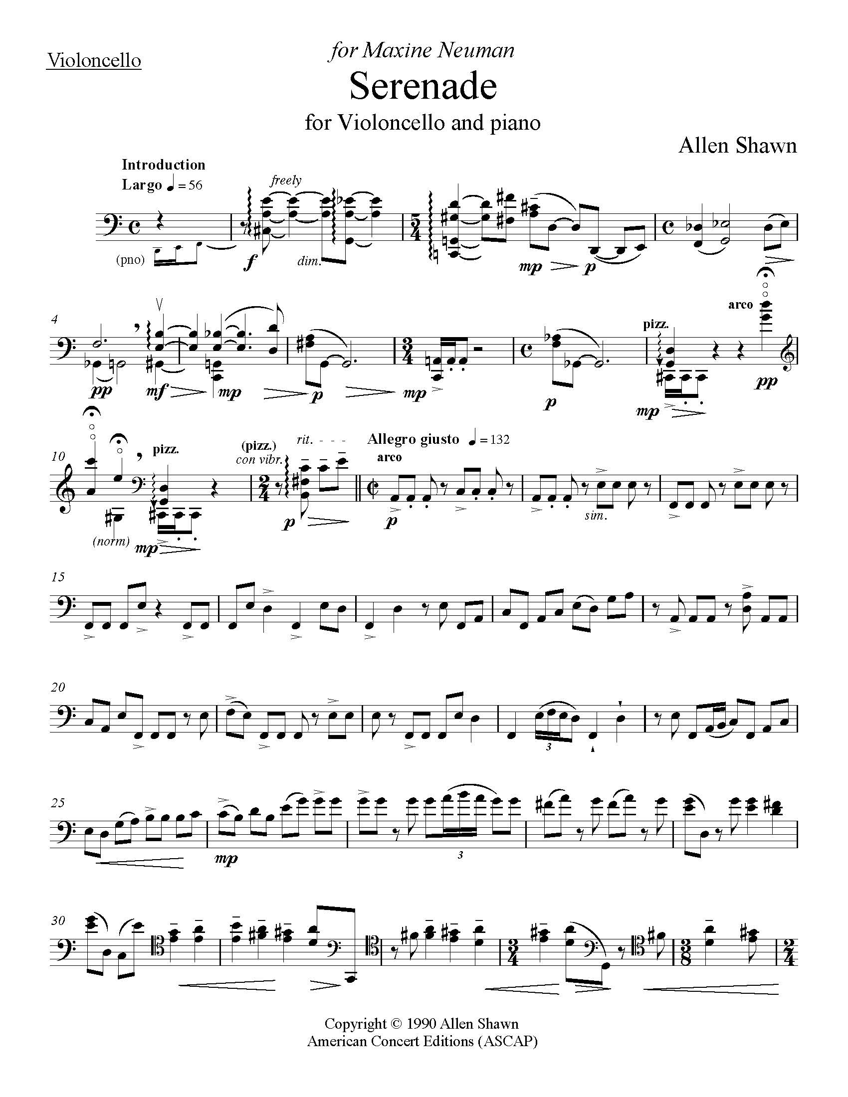 First performance: Bennington College Spring 1991 - Maxine Neuman, cello; Allen Shawn, piano