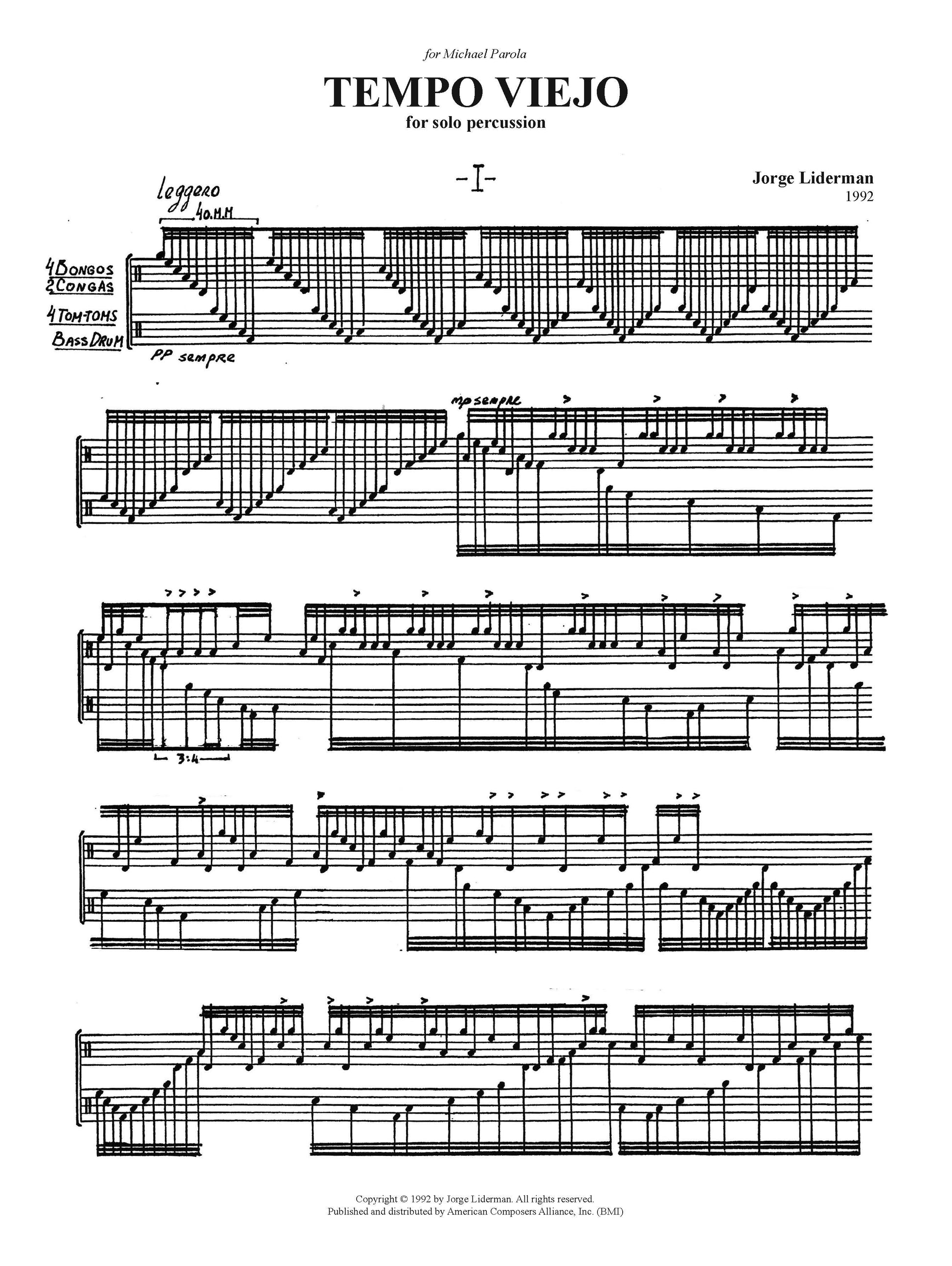 4 bongos, 2 congas, 4 tom-toms, bass drum, caja (or tambourine without jingles, and wood block