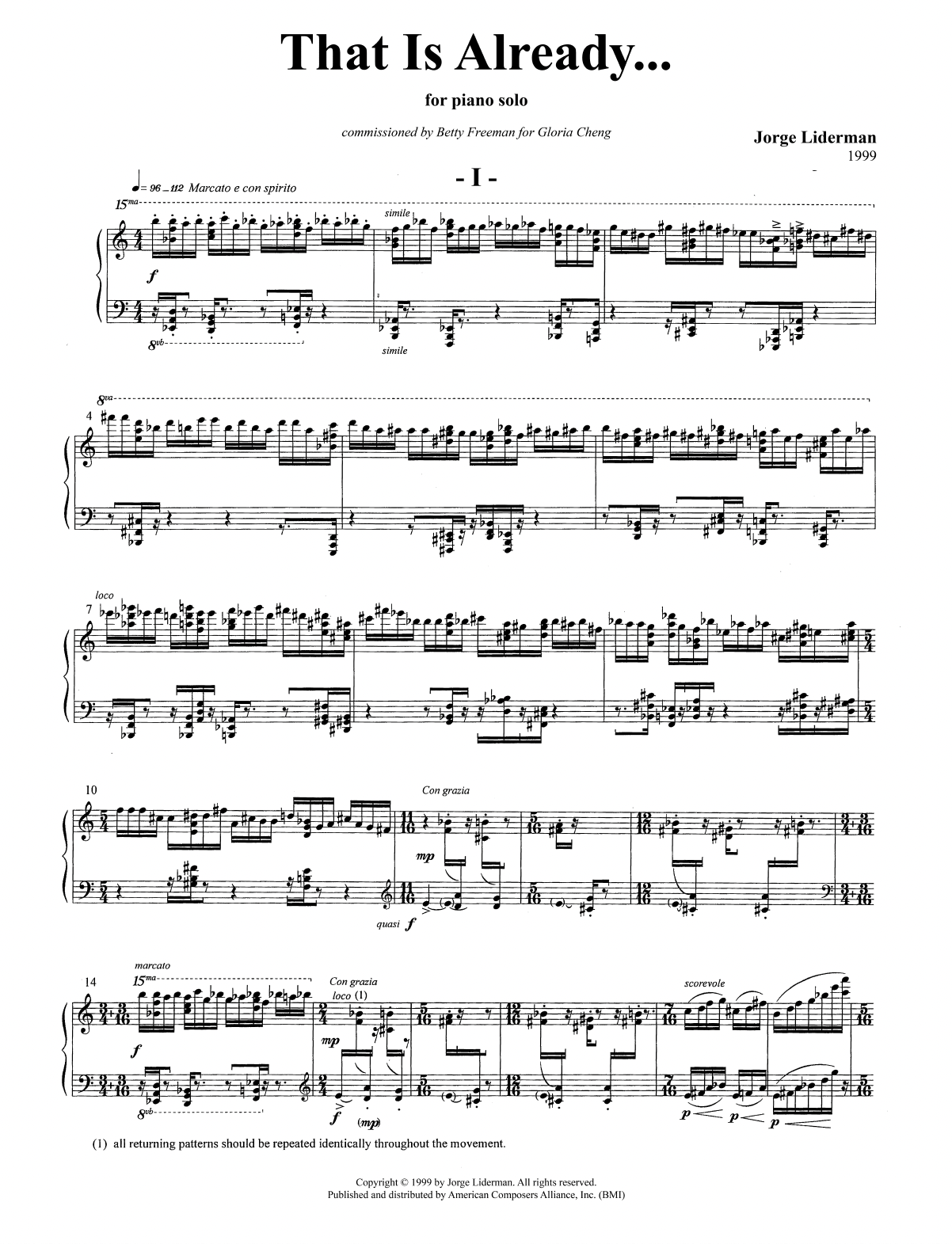 Movements: I. Marcato e con spirito II. Precisso e meccanico III. Tranquillo IV. Con grazia e leggero V. Vivo