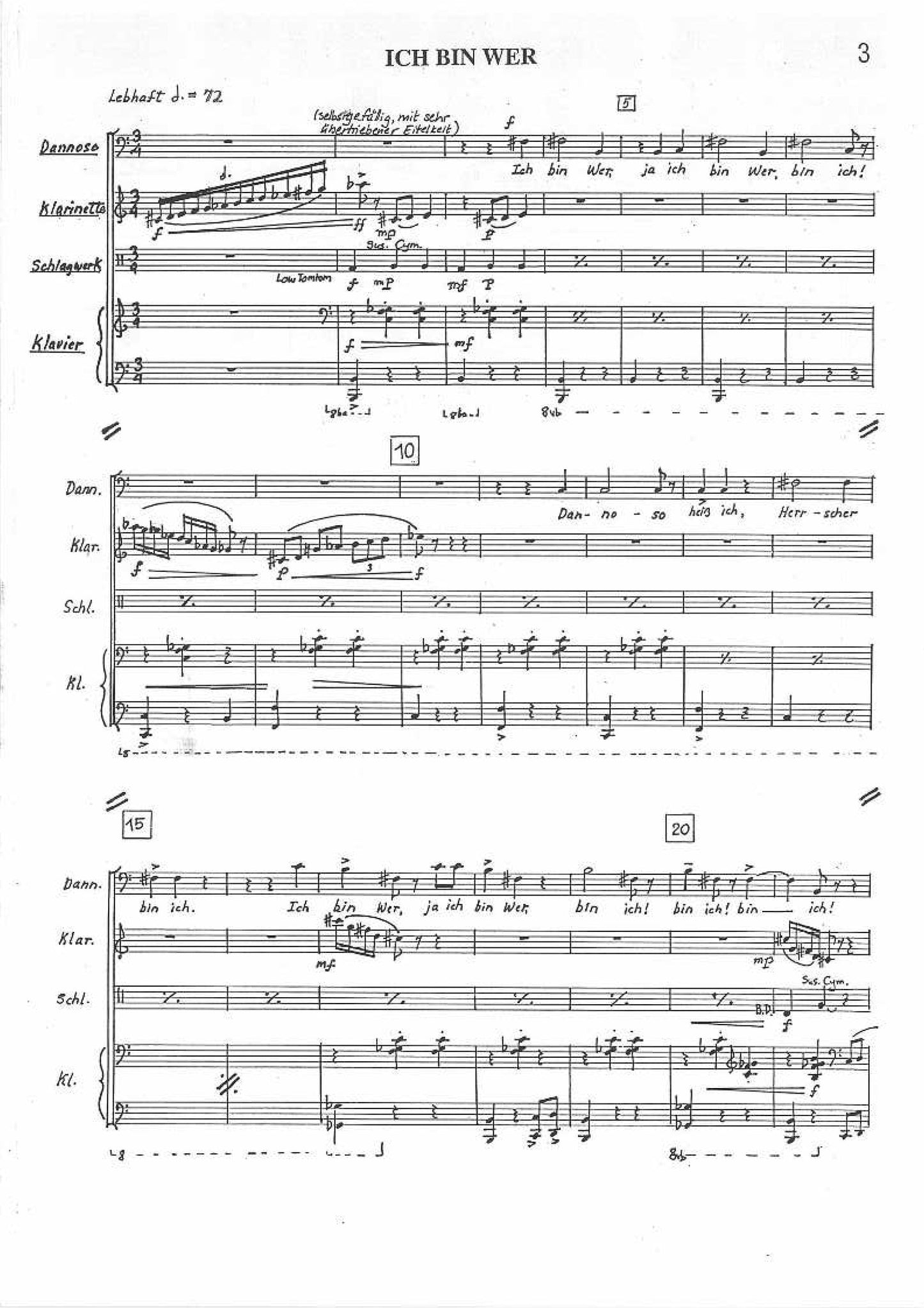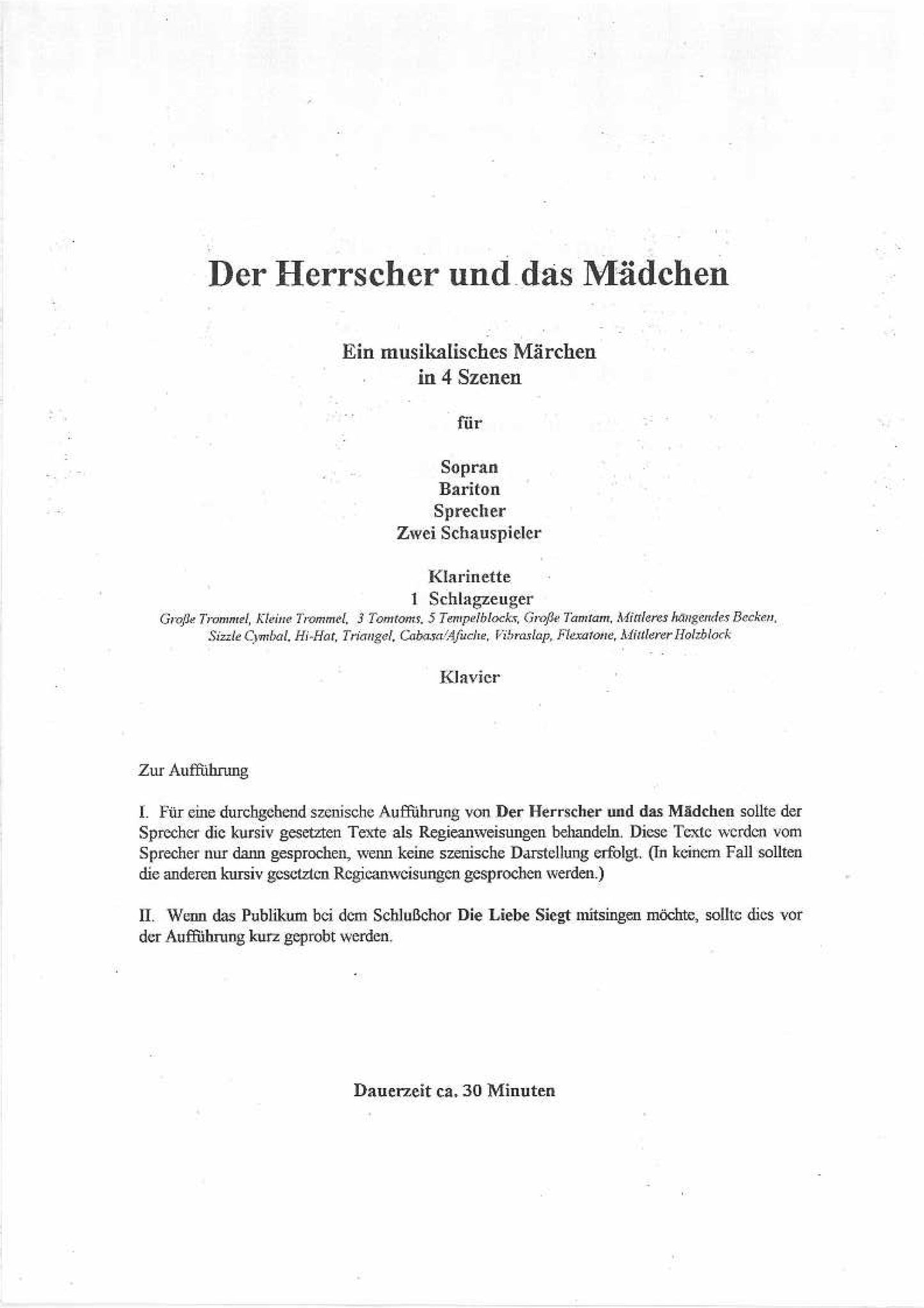 Soprano, baritone, narrator, 2 actors, piano, percussion, clarinet