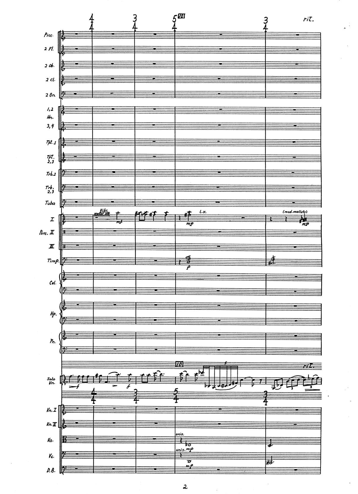 solo vln, 3222, 4331, timp, 3 perc, cel, hp, pf, strings