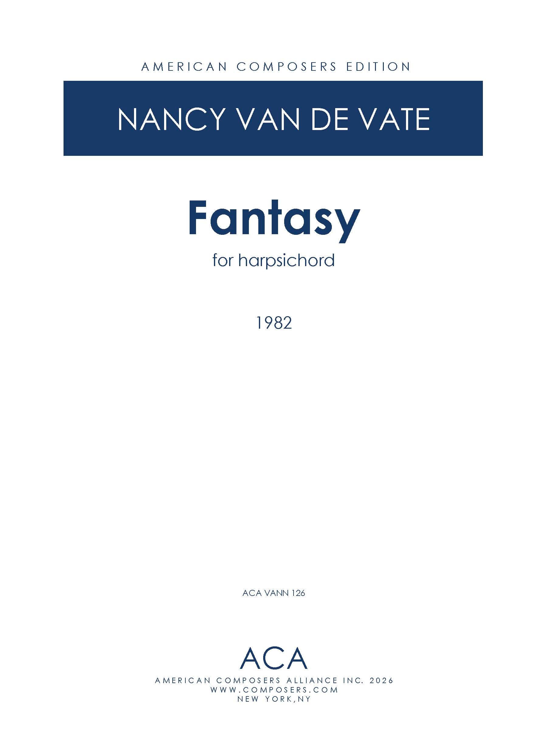 Nancy Van de Vate » FANTASY FOR HARPSICHORD