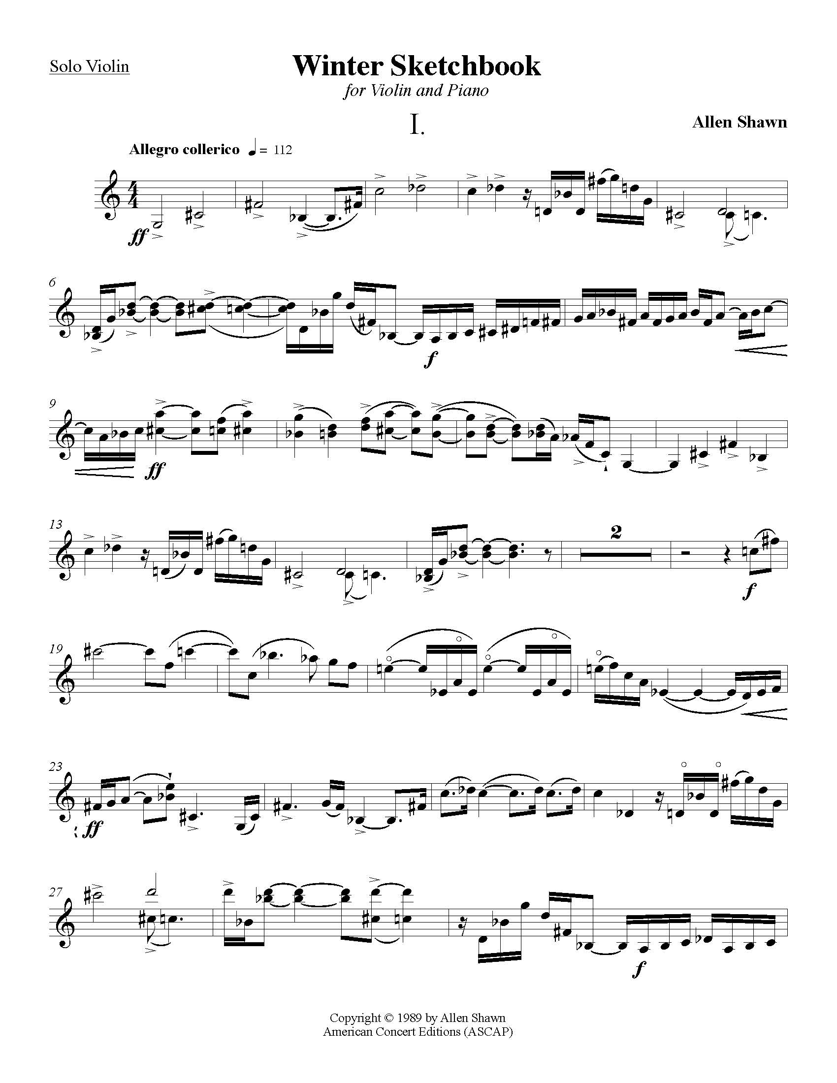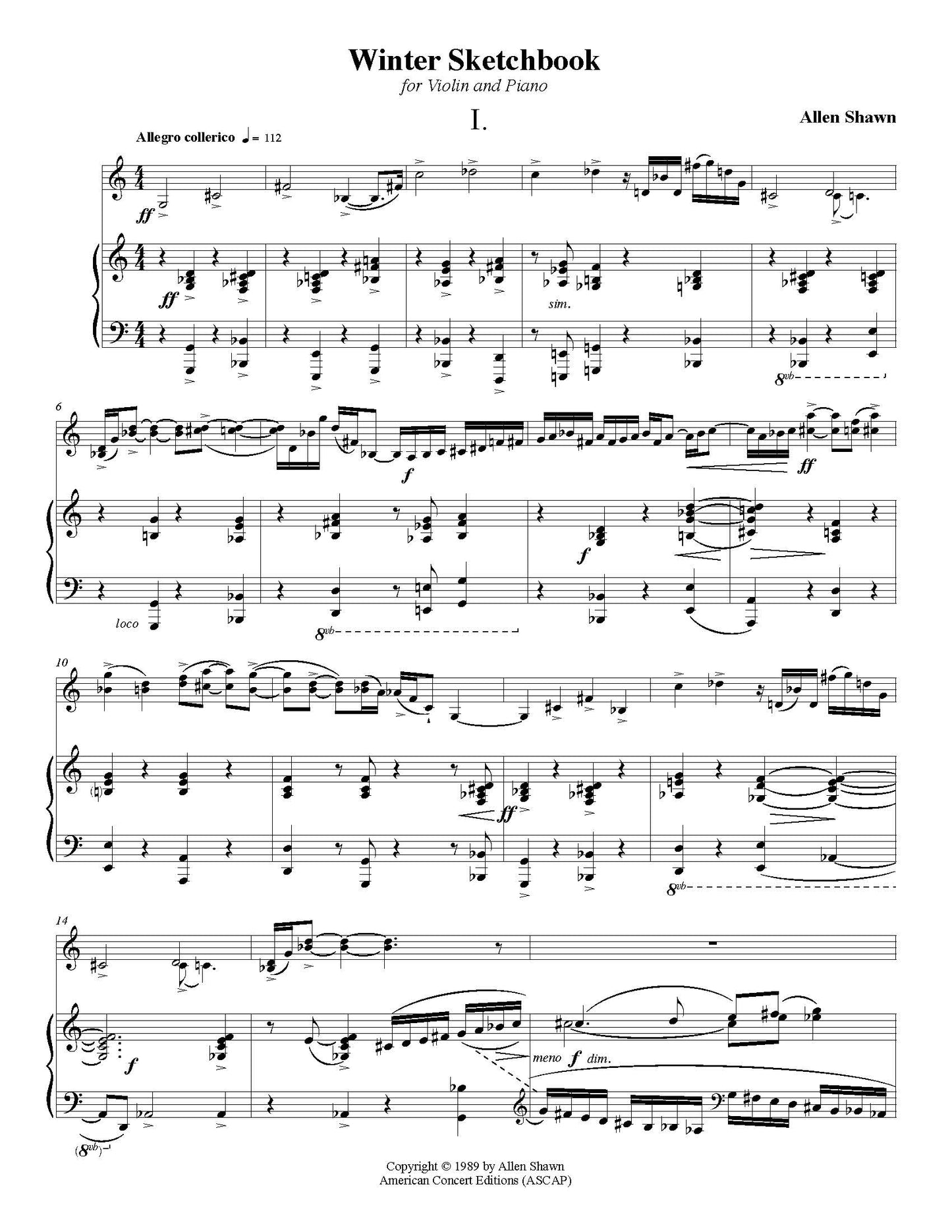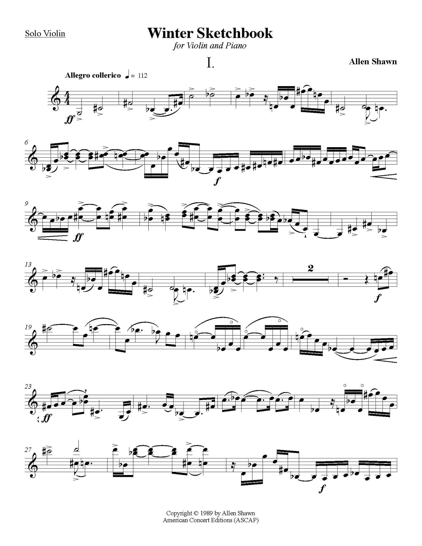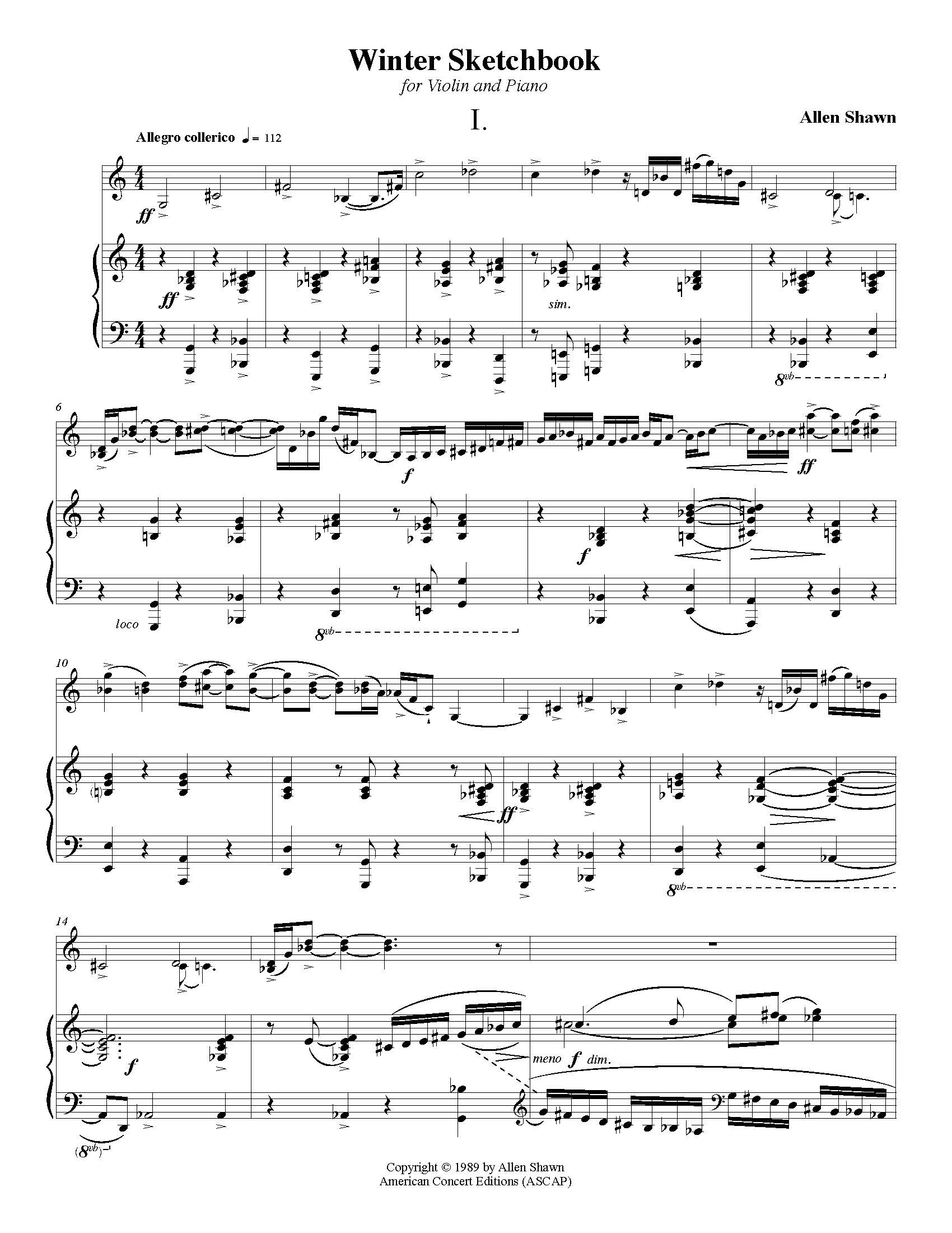 First performance: 1989, Bennington College -Joanna Jenner, Violin; Allen Shawn, PIano
