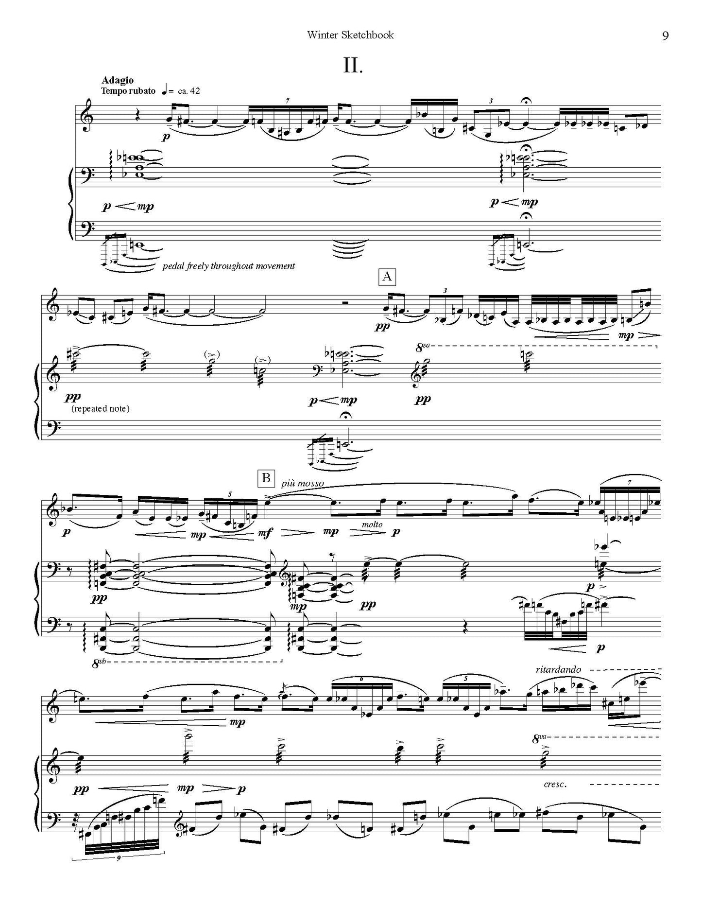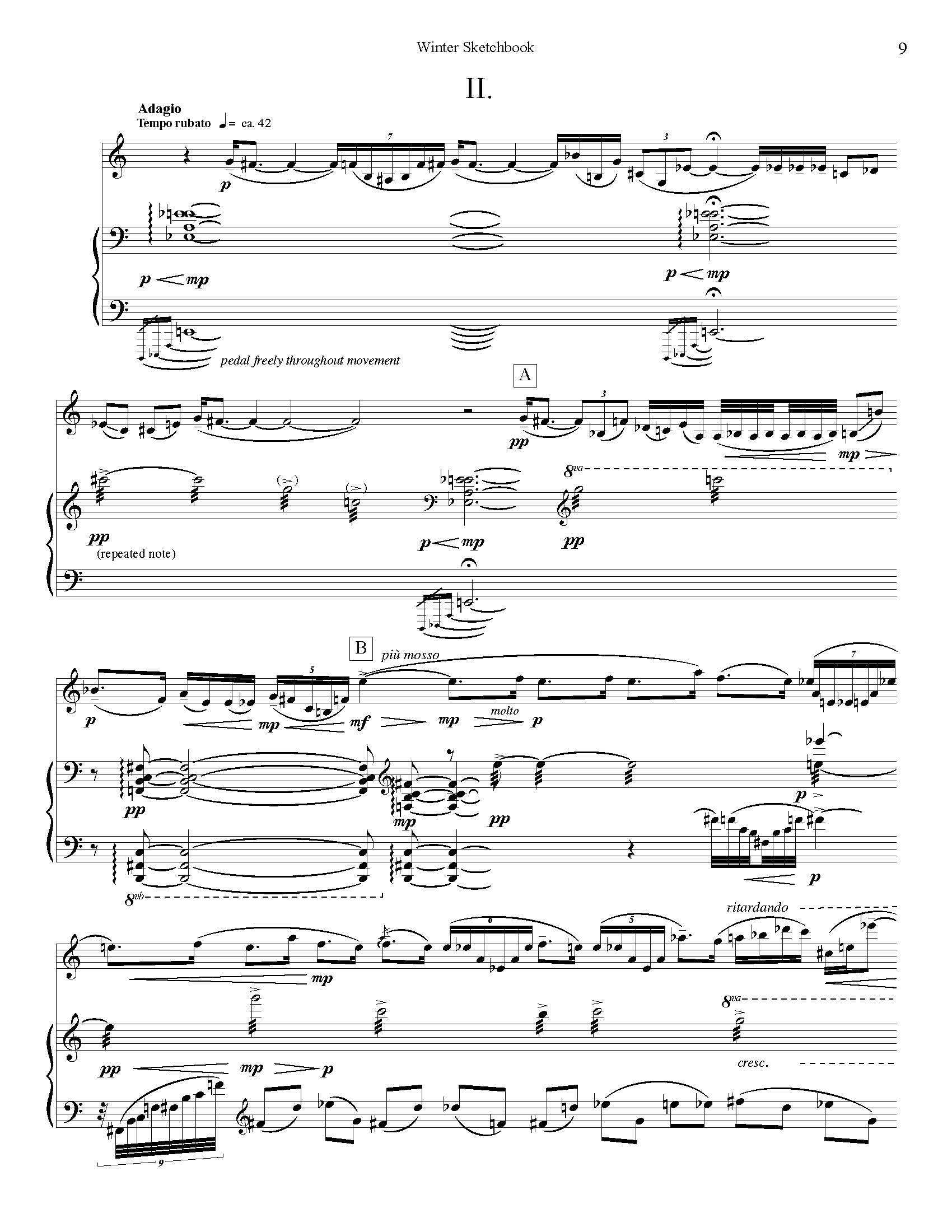 Winter Sketchbook, composed in 1989, is an intense, personal, unified, dark-hued work in five movements. In tone it resembles my Suite for Cello Quartet, composed earlier that year.